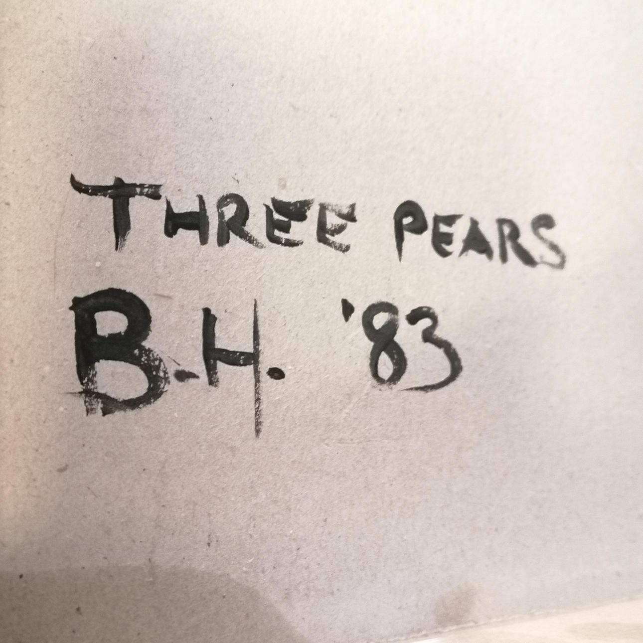 Oil painting on canvas 'Three pears' signed verso B.H. '83 - 60cm x 79cm.