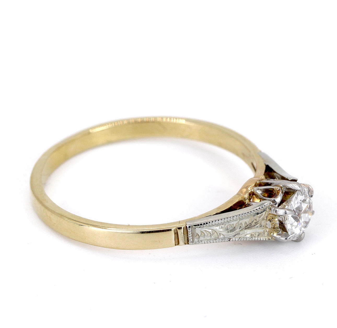 An 18ct yellow gold diamond set solitaire ring. Dia. 0.30ct approx.