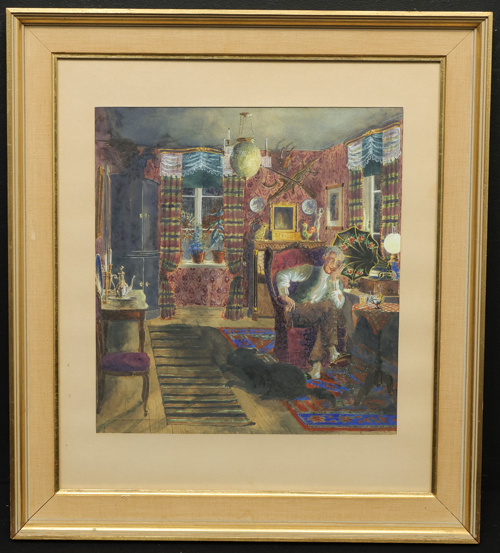 4946819. OKÄND KONSTNÄR. Mixed media, interior, on paper.