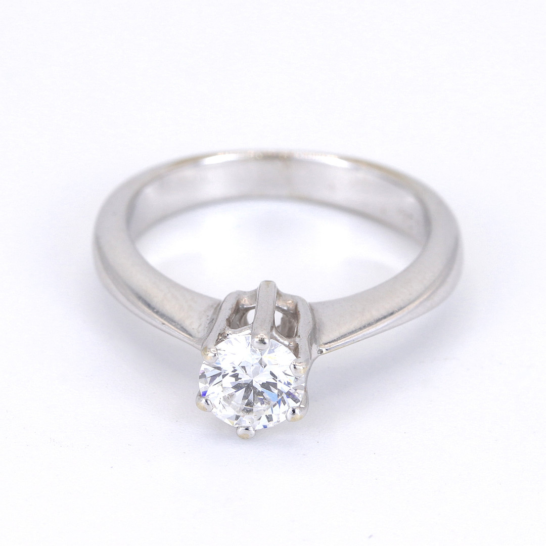 4946863. 18CT WHITE GOLD DIAMOND SET SOLITAIRE RING.