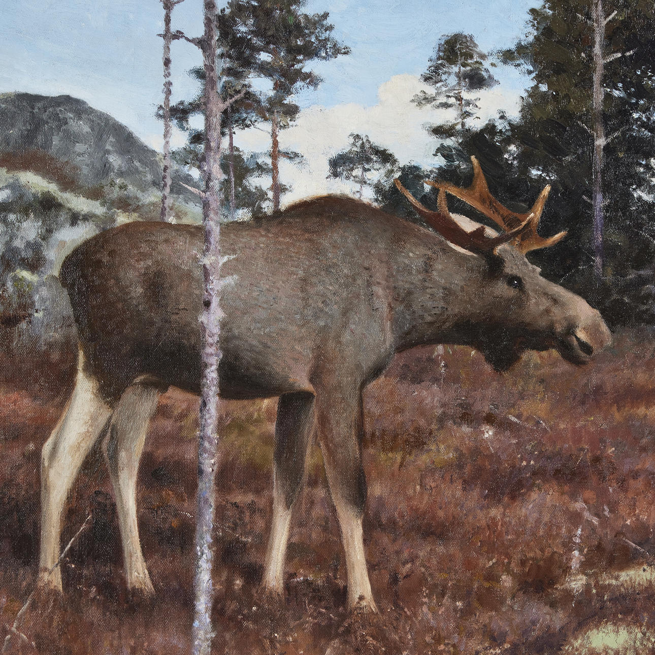 4947010. THURE WALLNER. Moose, oil on canvas, signed and dated T Wallner 1913.