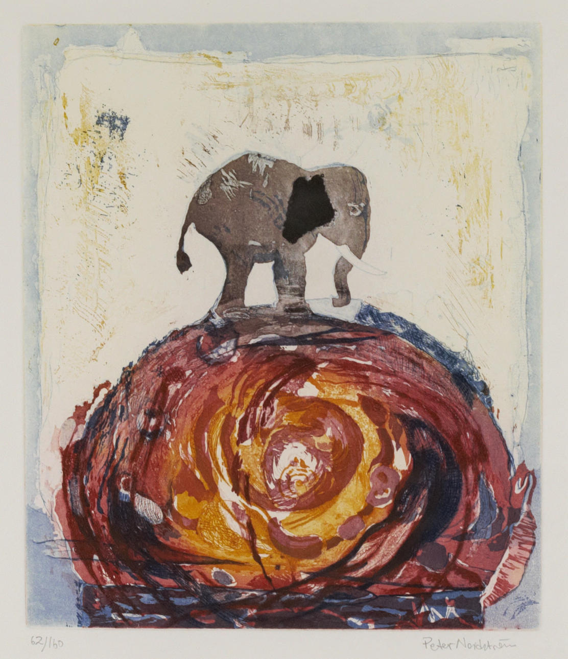 4947131. PETER NORDSTRÖM. Lithograph, 62/160, composition with elephant, signed.
