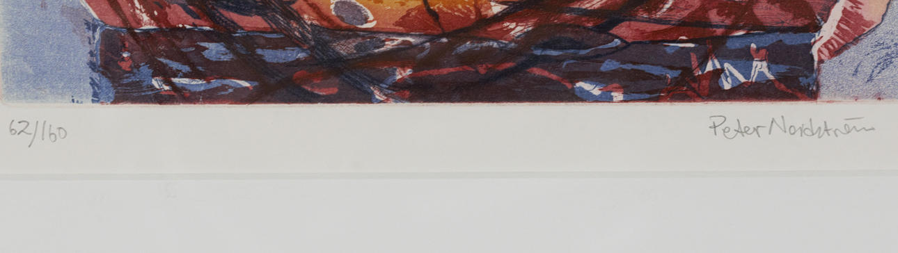 PETER NORDSTRÖM. Lithograph, 62/160, composition with elephant, signed.
