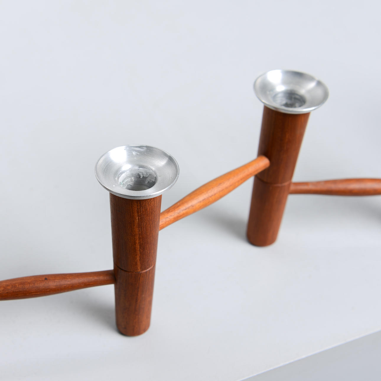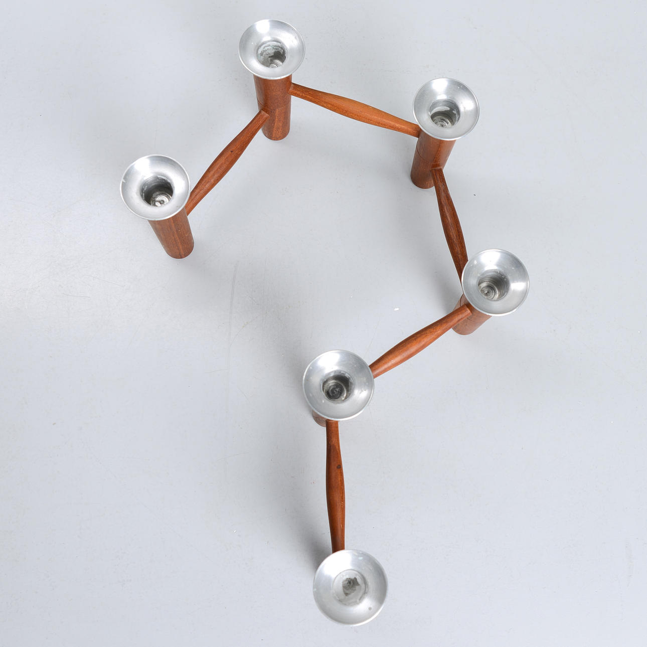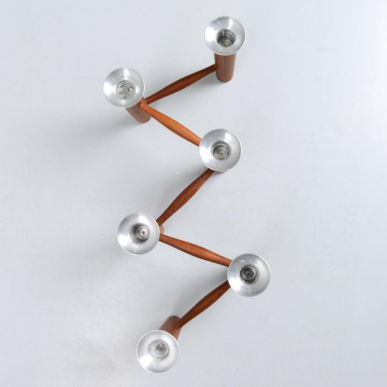 Teak and metal. Adjustable. With 6 light arms. Folded length 53 cm.