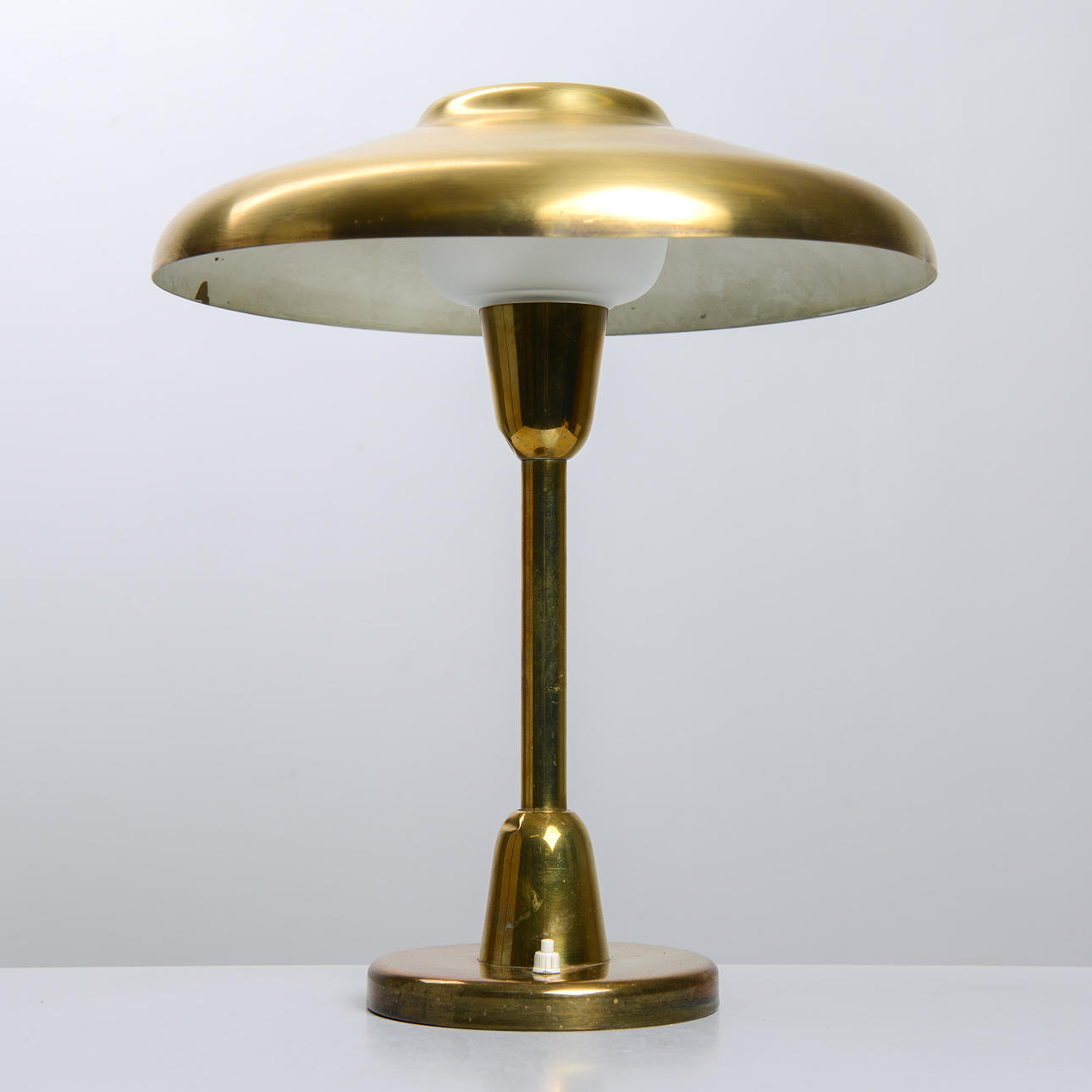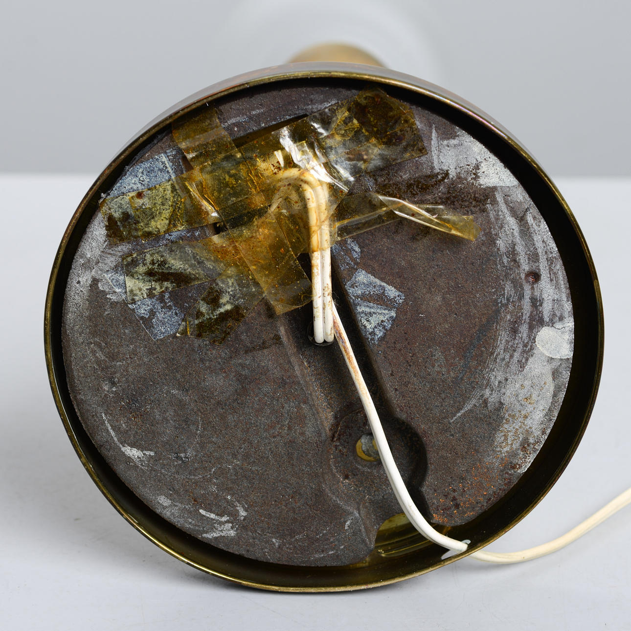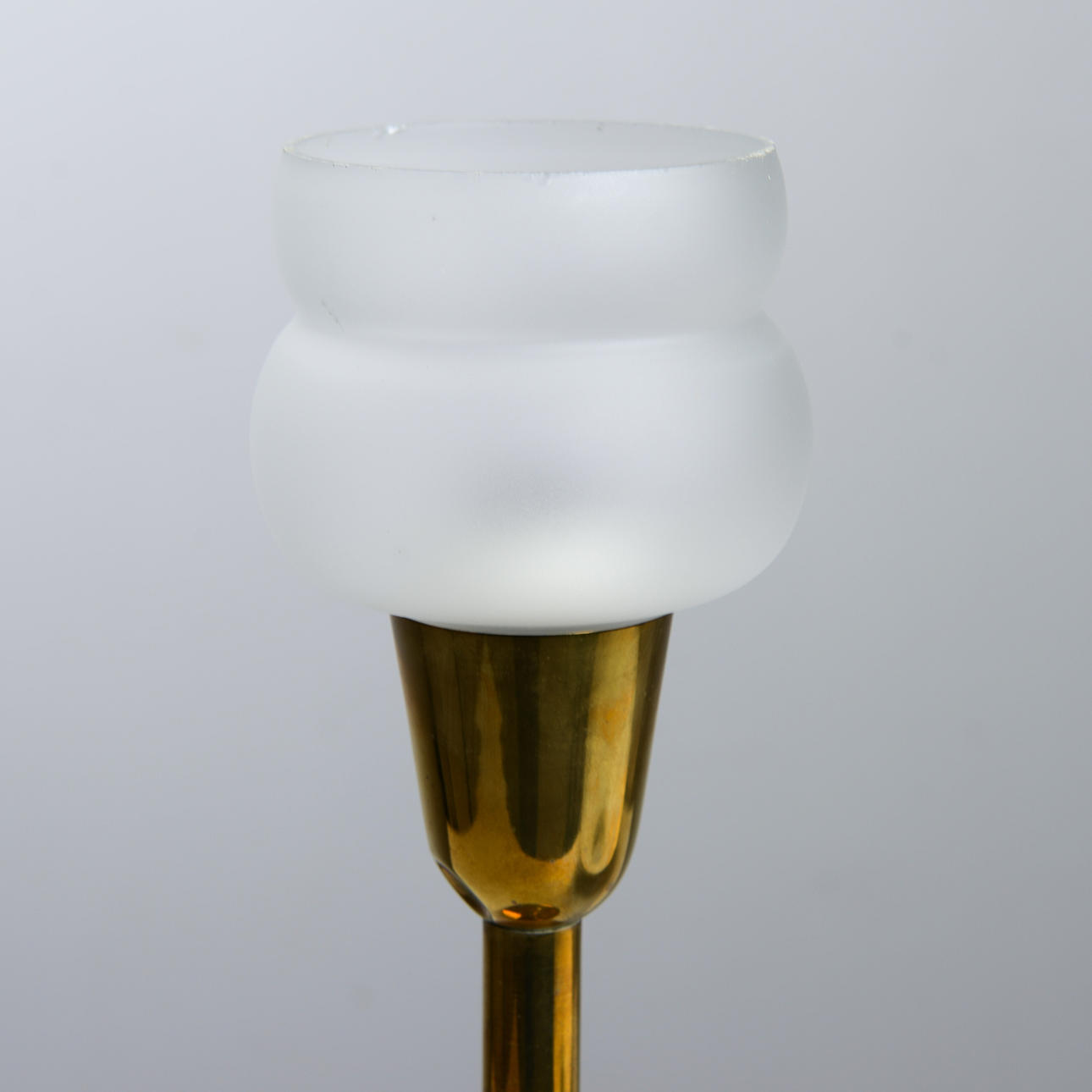 Normal wear and tear. Slight scratches on lampshade. Chips along the top edge of the glass cup. Worked at the time of cataloging. No functional warranty is provided.