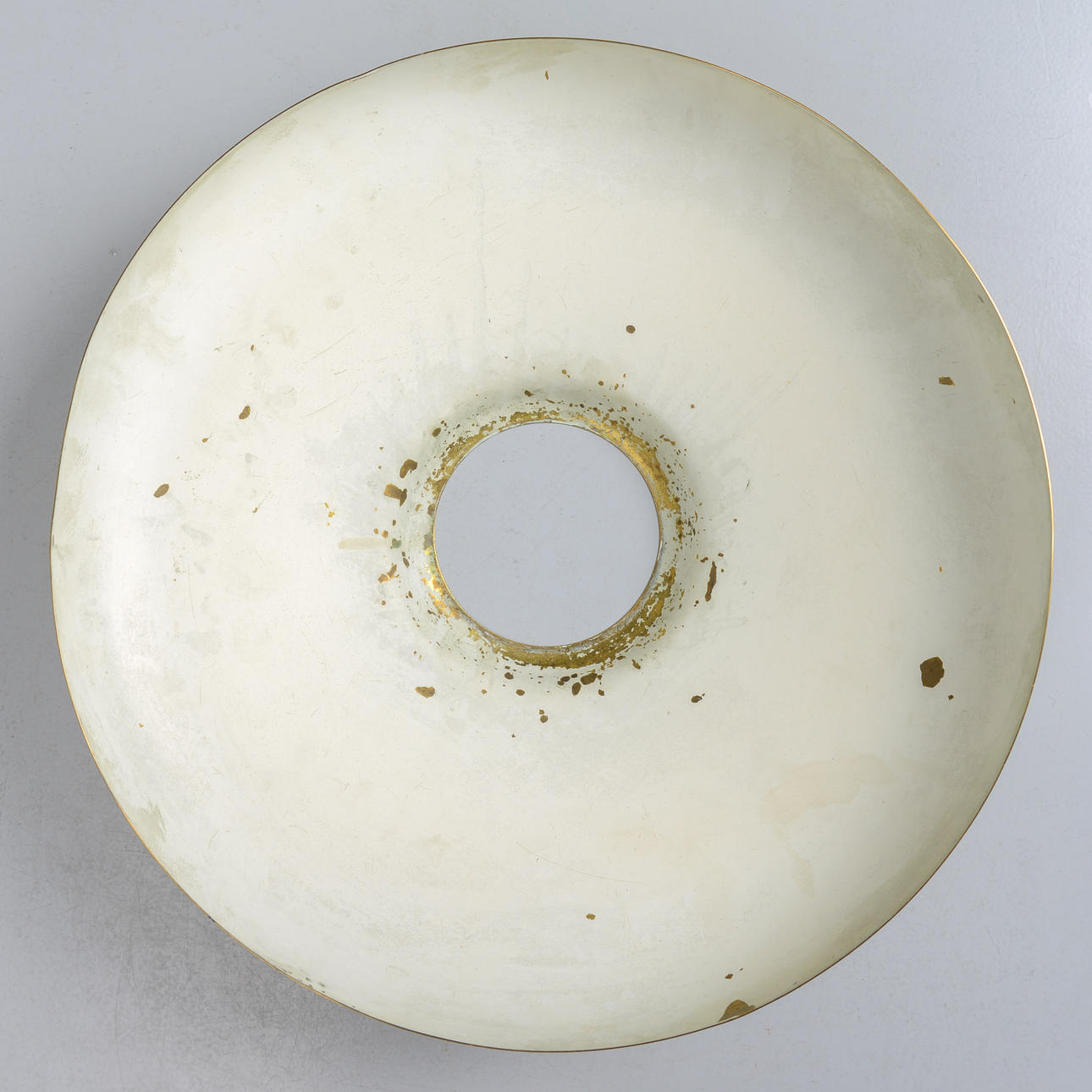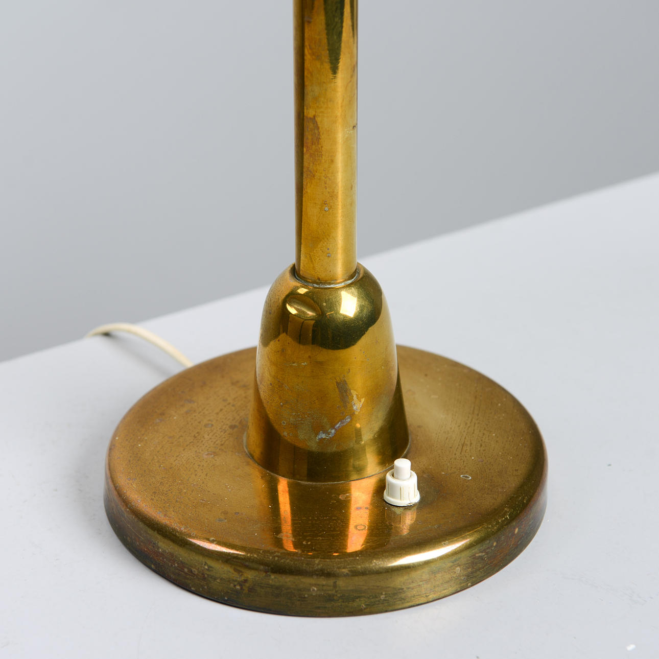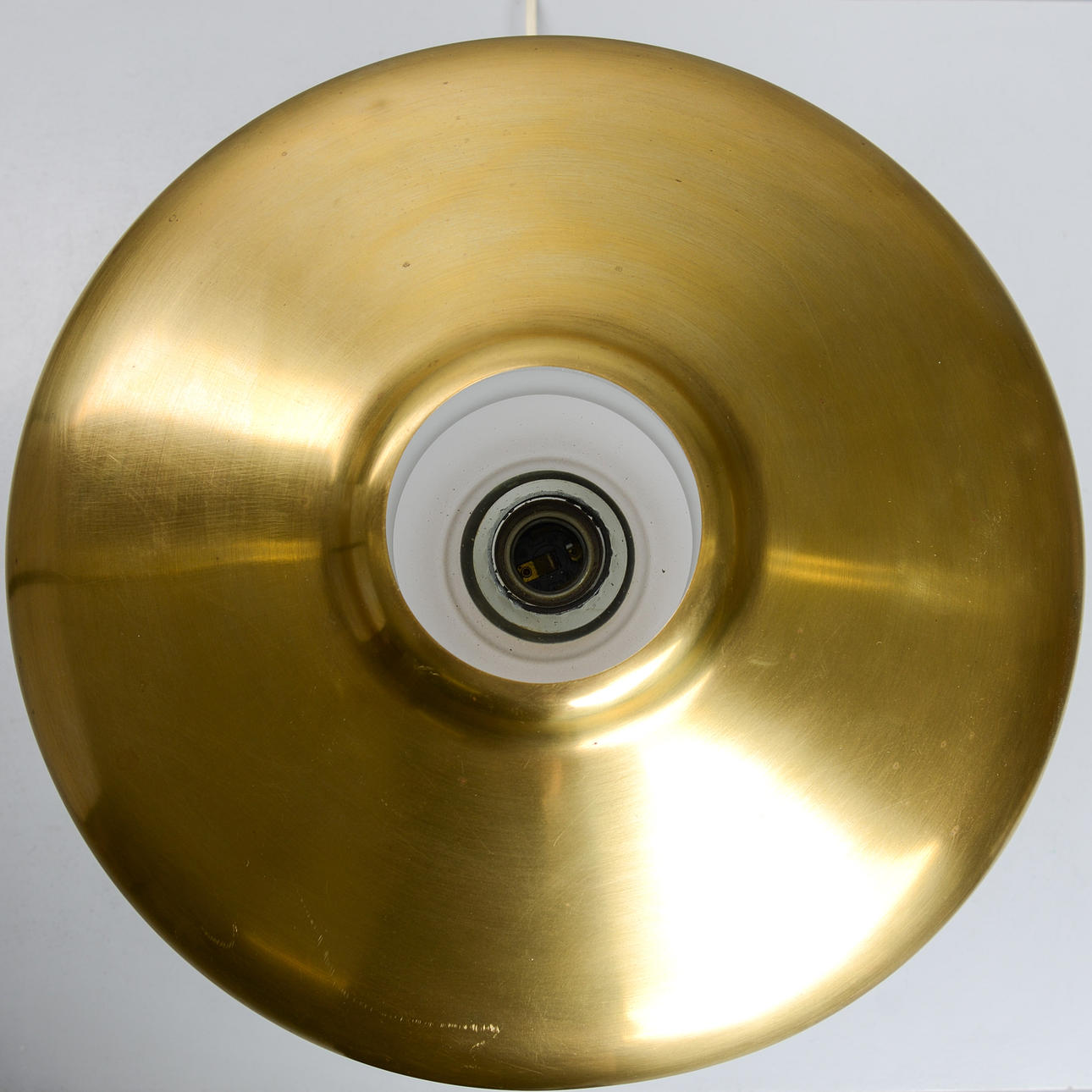Normal wear and tear. Slight scratches on lampshade. Chips along the top edge of the glass cup. Worked at the time of cataloging. No functional warranty is provided.