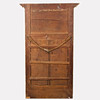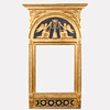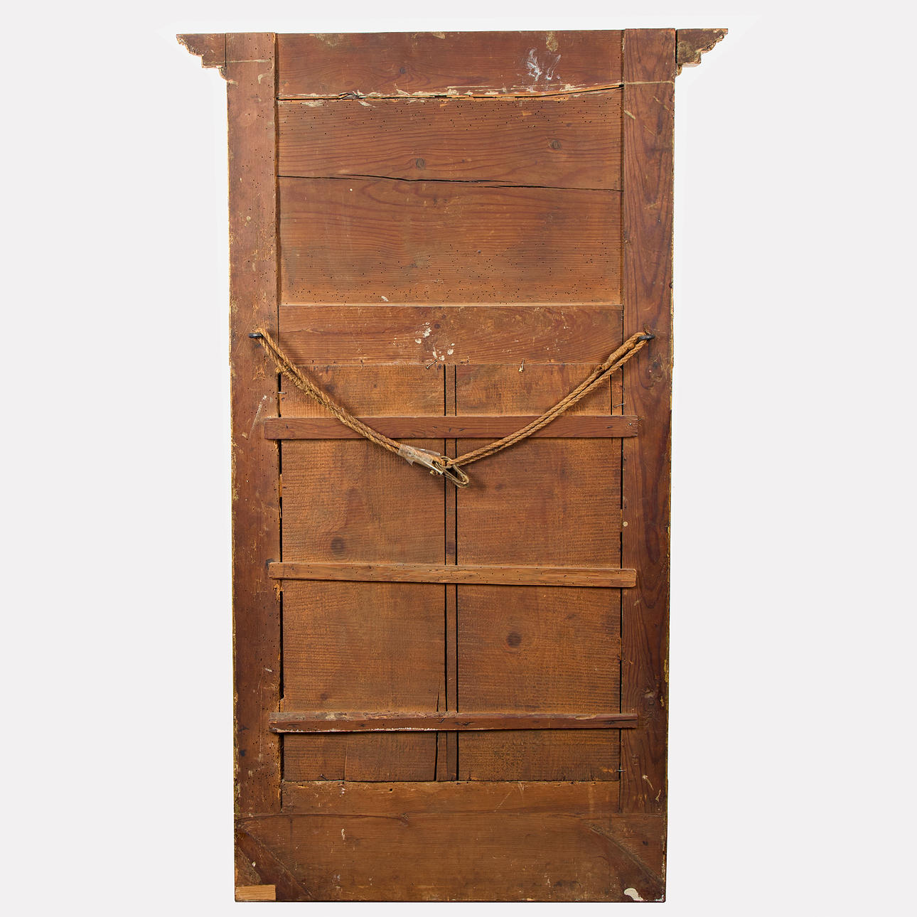 Straight shape. Lunette crown with paired grackles and torchére. Corner catcher with fluorons. H. 124, B. 76 cm.