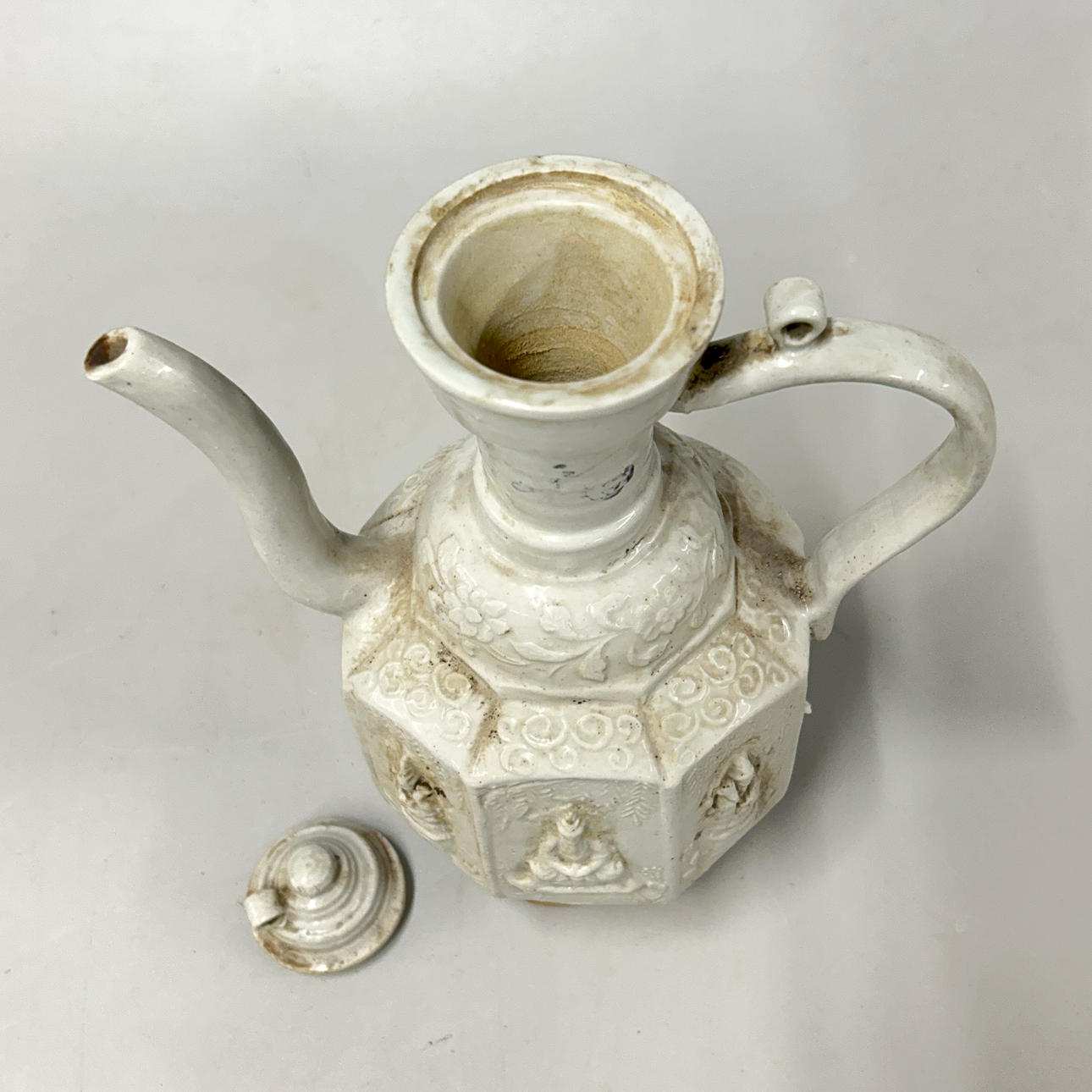 A WHITE CERAMIC KOREAN TEA POT.