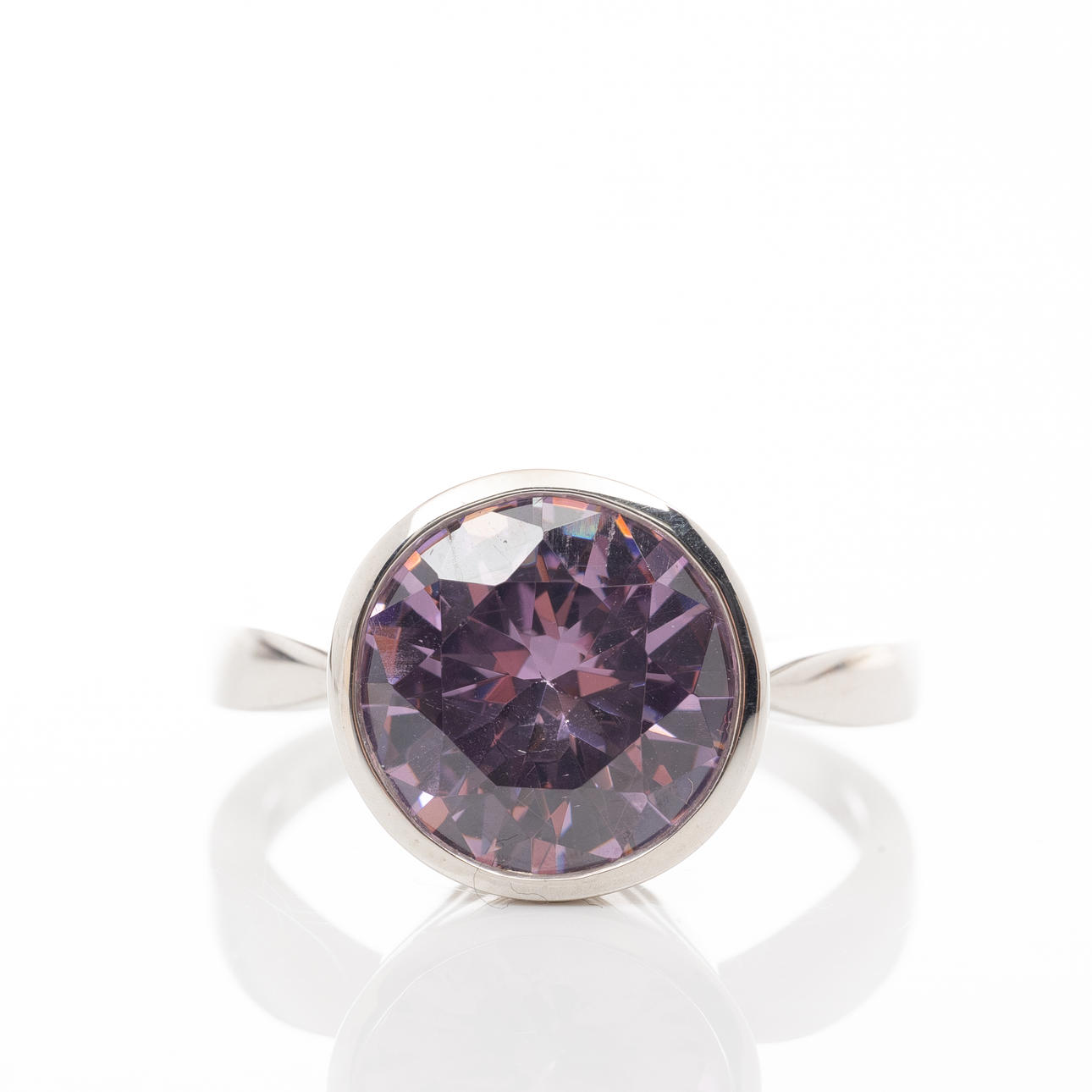 Sterling silver ring with a purple brilliant cut cubic zirconia