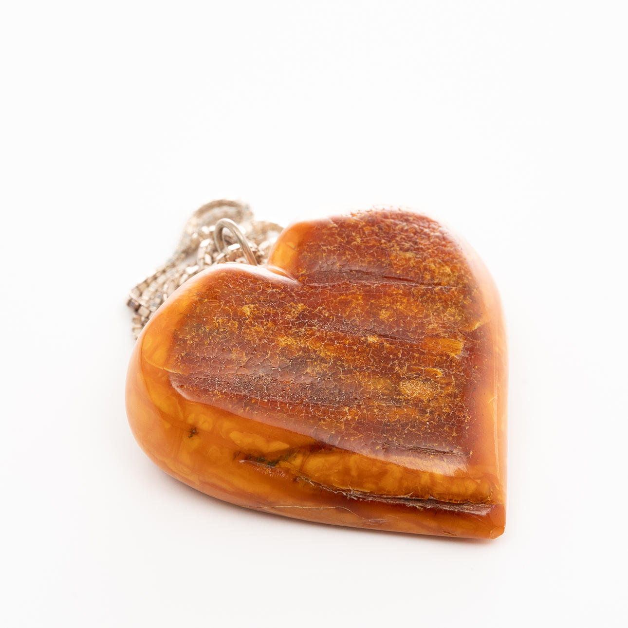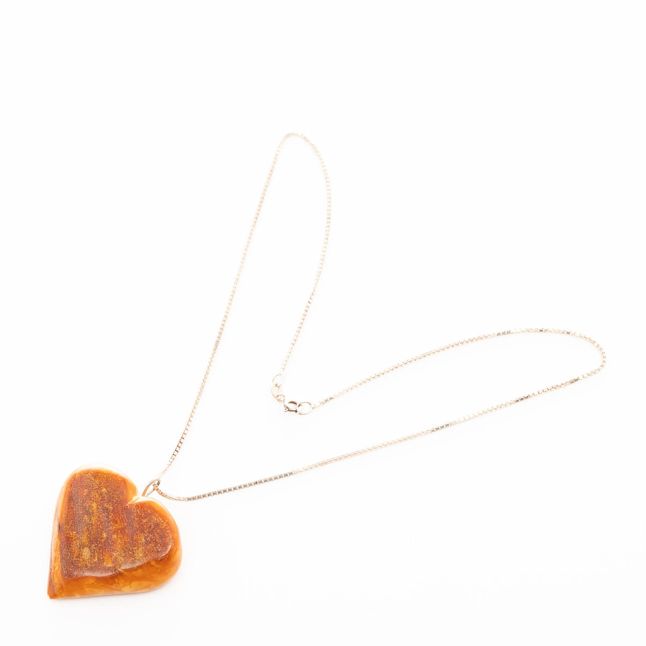 Necklace in silver with a heart-cut amber