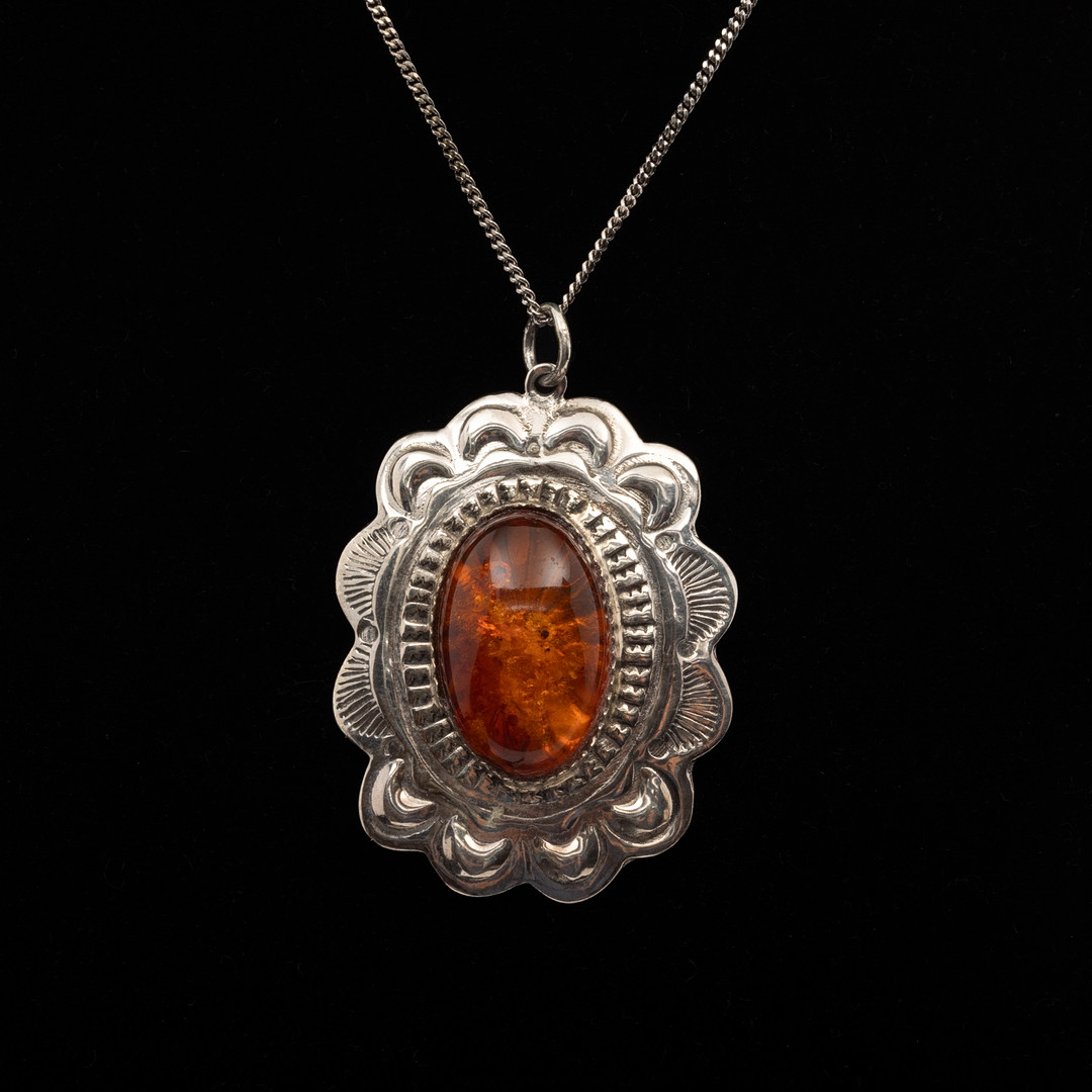4948085. NECKLACE, Silver, Amber.
