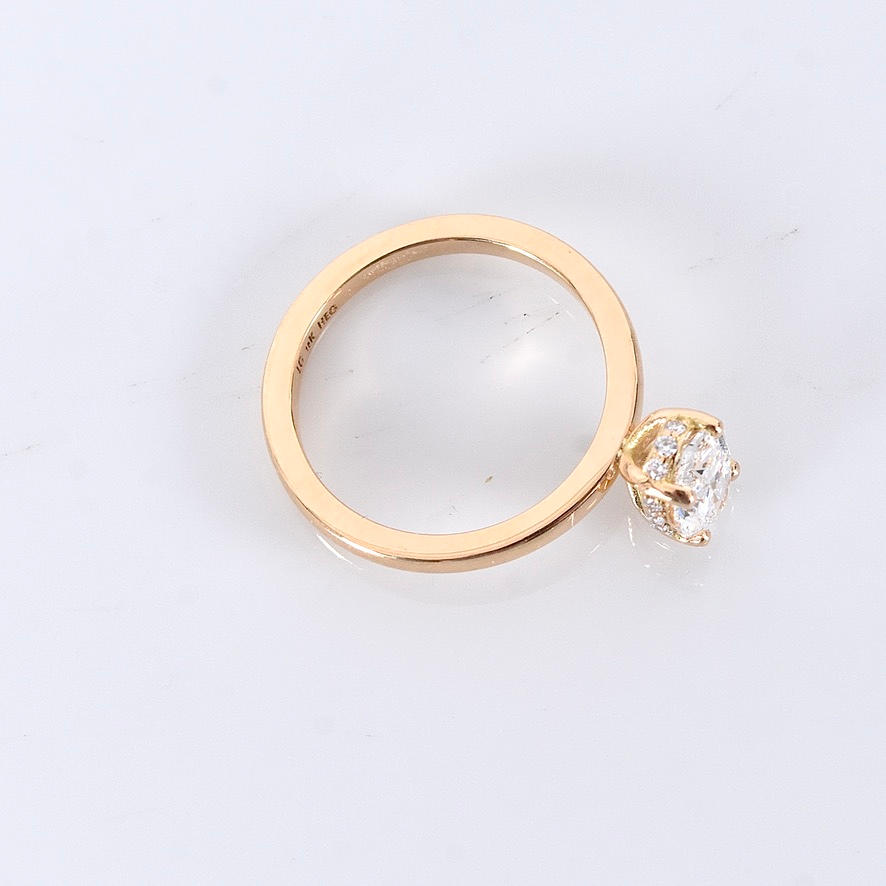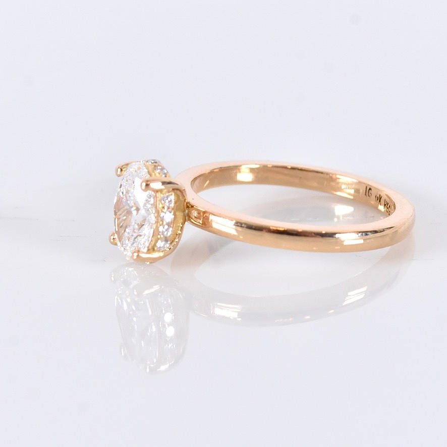 Possessed with a larger oval cut diamond of 1,00ct River/Vvs2 (d/Vvs2) IGI Cert no. LG710553075 and smaller brilliant cut diamonds of 0.07ct in matching quality