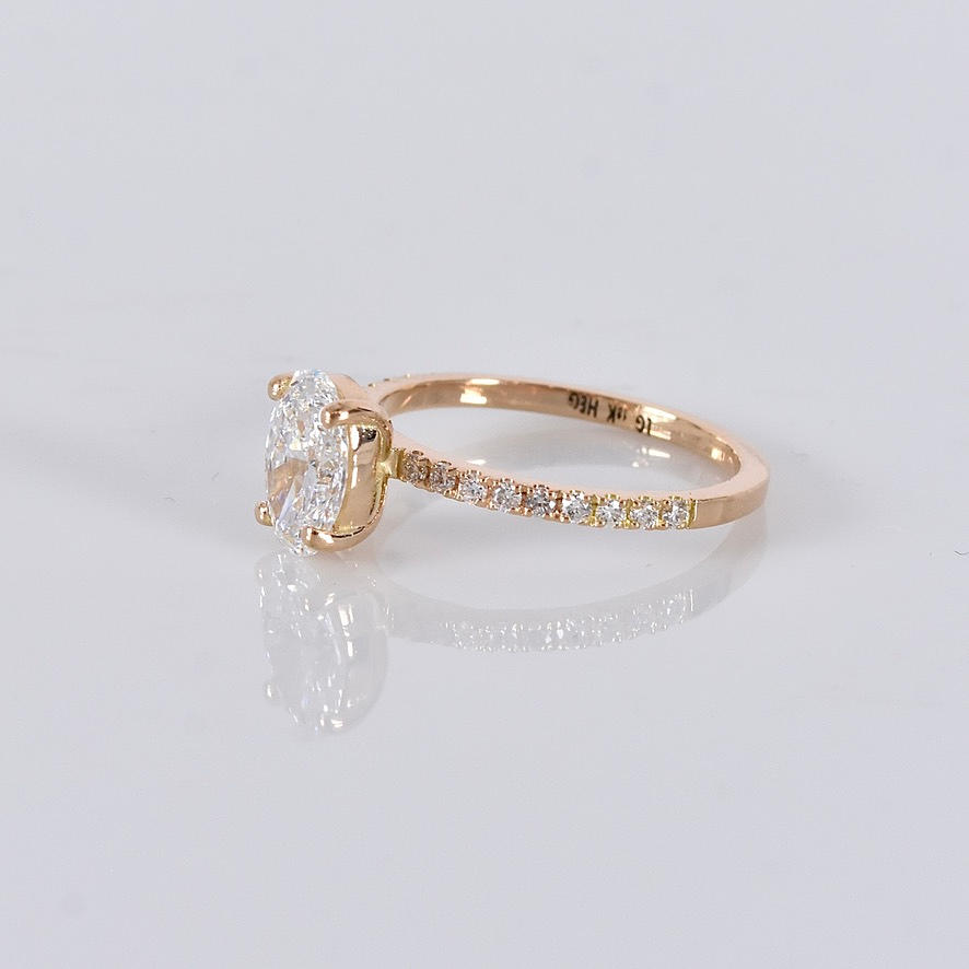 Possessed with a larger oval cut diamond of 1,01ct River/VS1 (D/VS1) IGI Cert no. LG724543817 and smaller brilliant cut diamonds of 0.18ct in matching quality