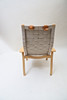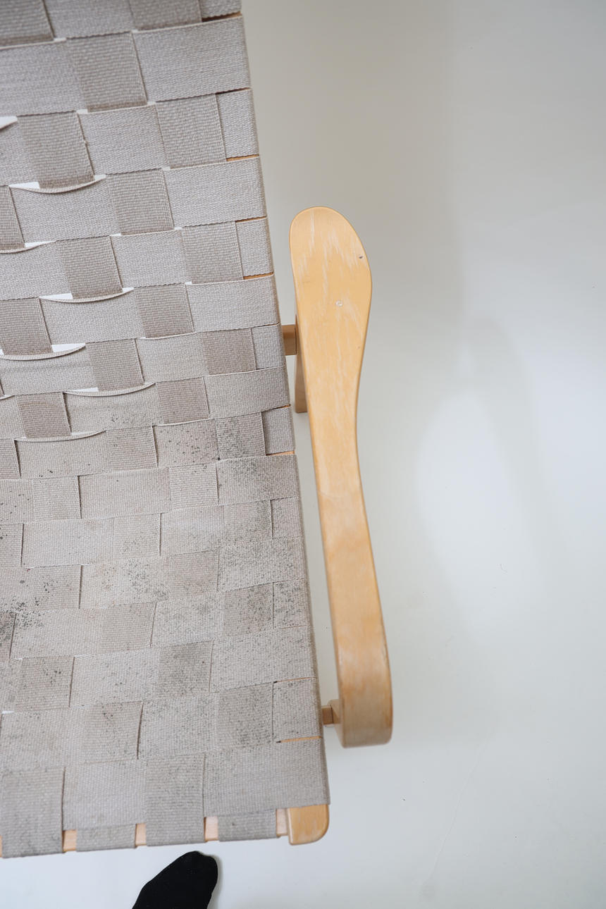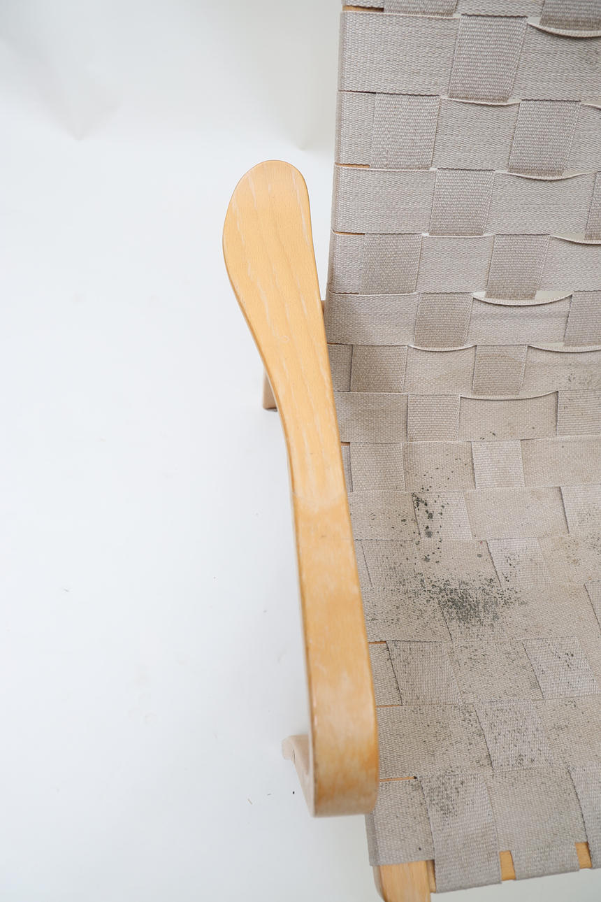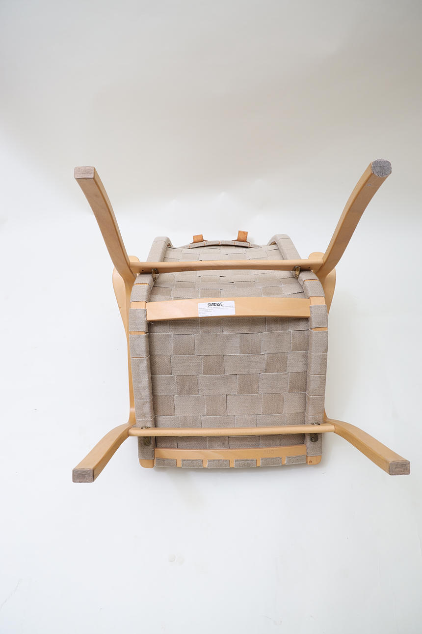 Laminated book, seat and back made of canvas. Neck pillow made of textile with straps made of leather.