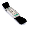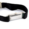 An original Art Deco platinum watch set with princess cut emeralds and diamonds on a black silk strap. 1.5 x 4 cms.