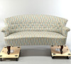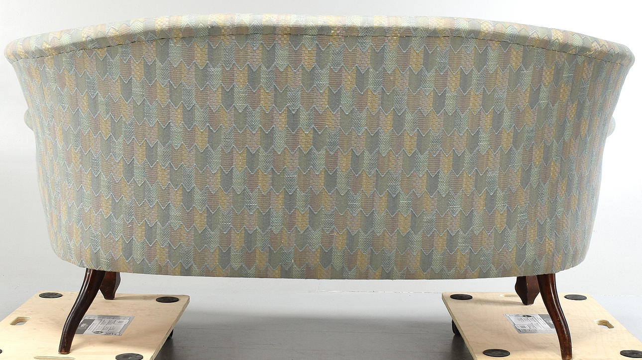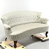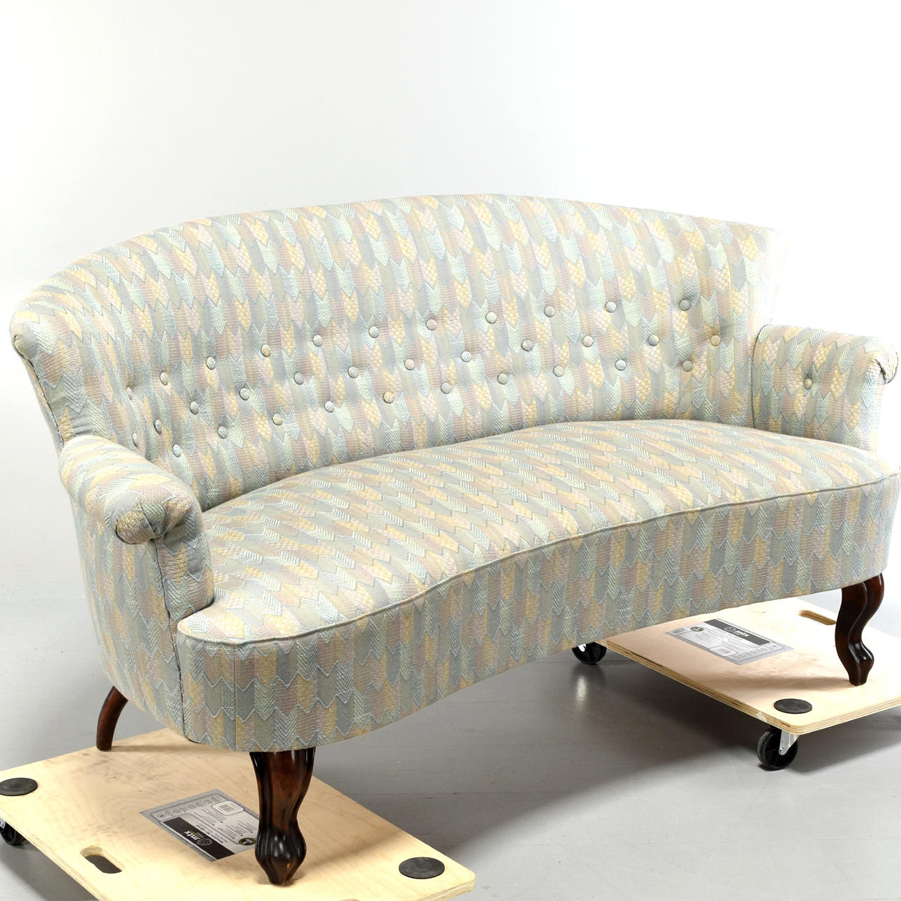 Carved legs in solid wood. In modern times reupholstered in the furniture upholstery workshop according to the marking on the underside.