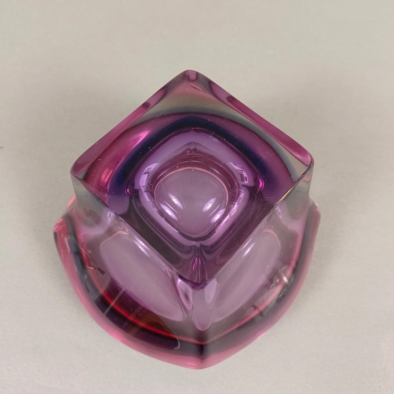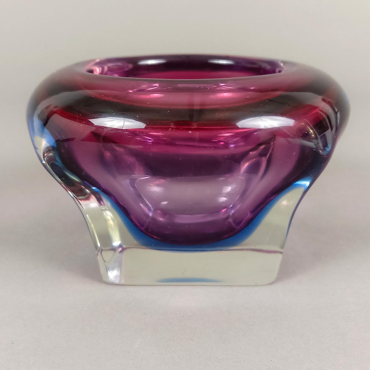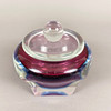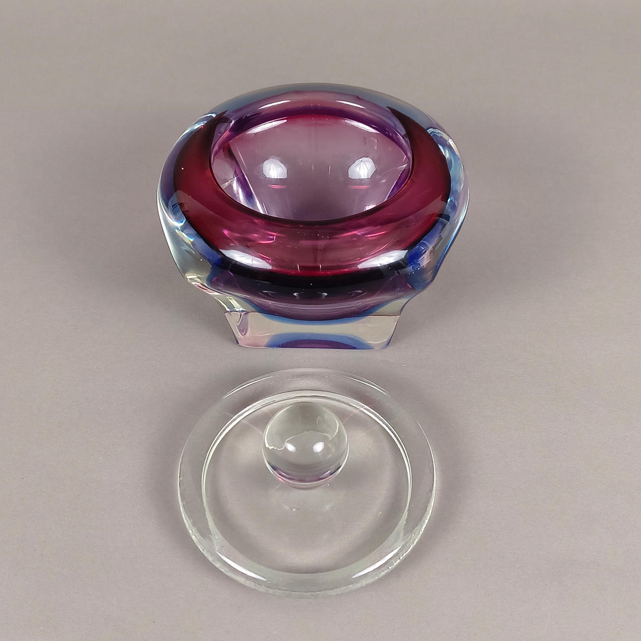 thick-walled glass, blue and purple walls on the inside, clear glass lid well completed,