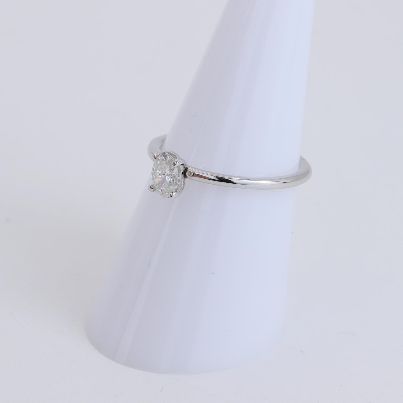 4948984. CONTEMPORARY OVAL CUT DIAMOND RING.