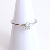 A contemporary 18ct white gold ( tested ) ring set with an oval cut diamond. UK ring size O.