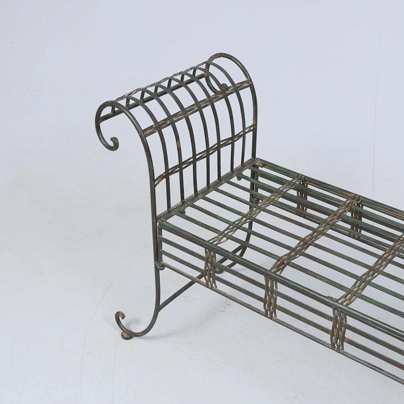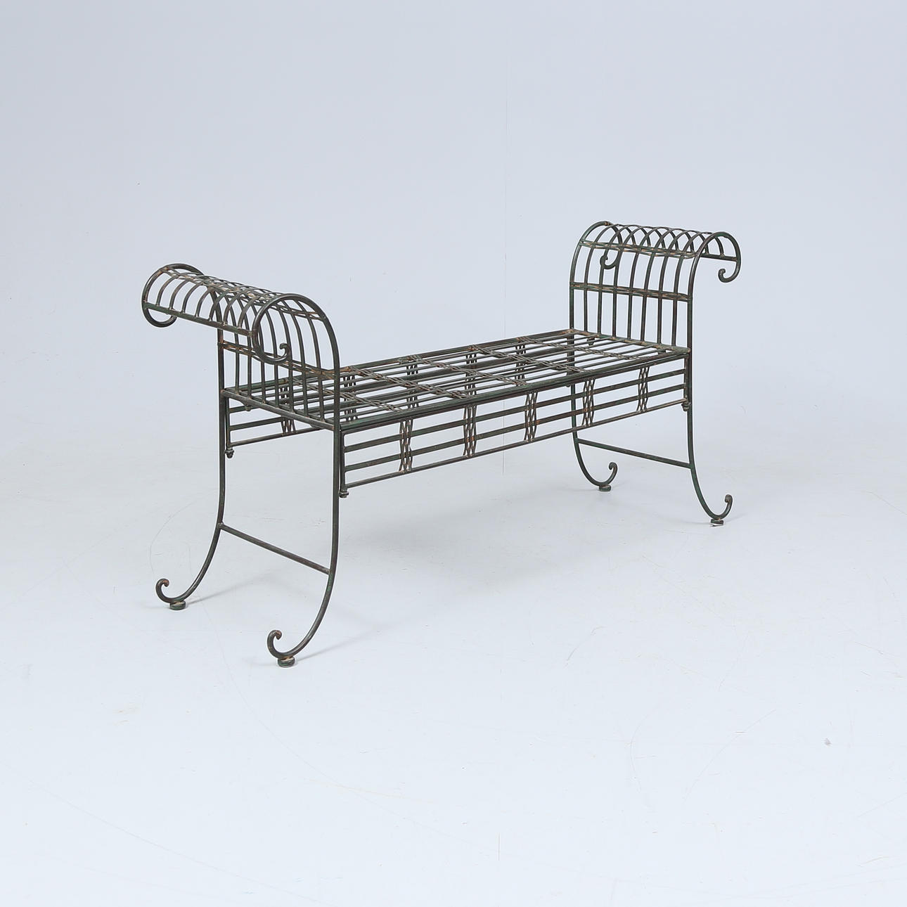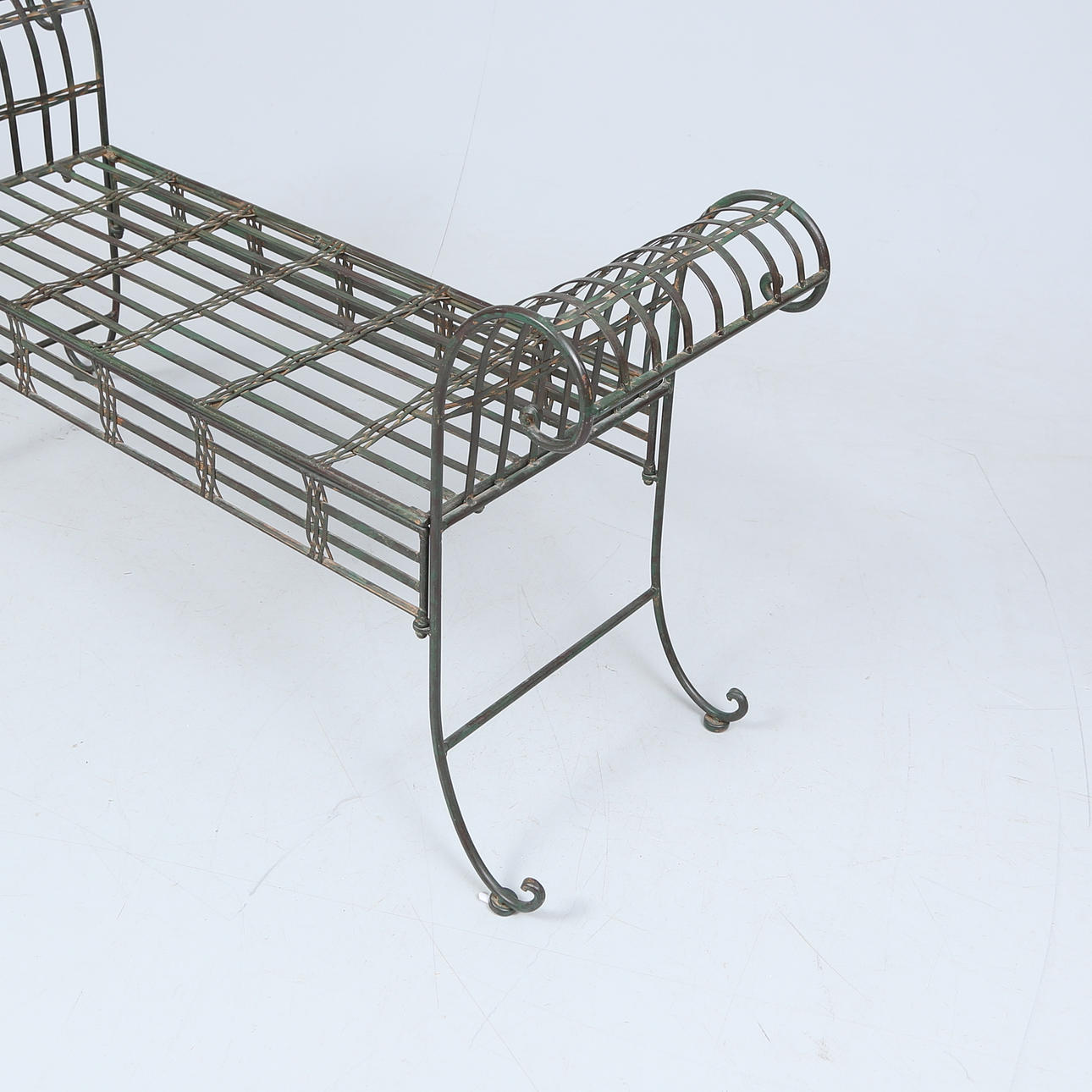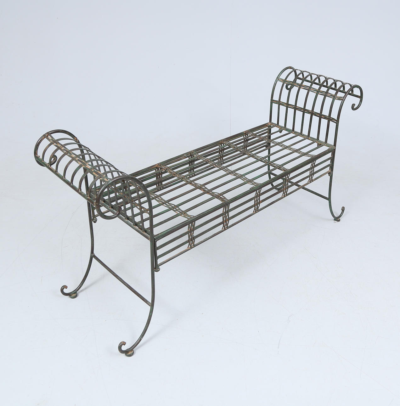 4949022. TRÅGÅRDSBENK, patinated metal, 1900/2000 tal.