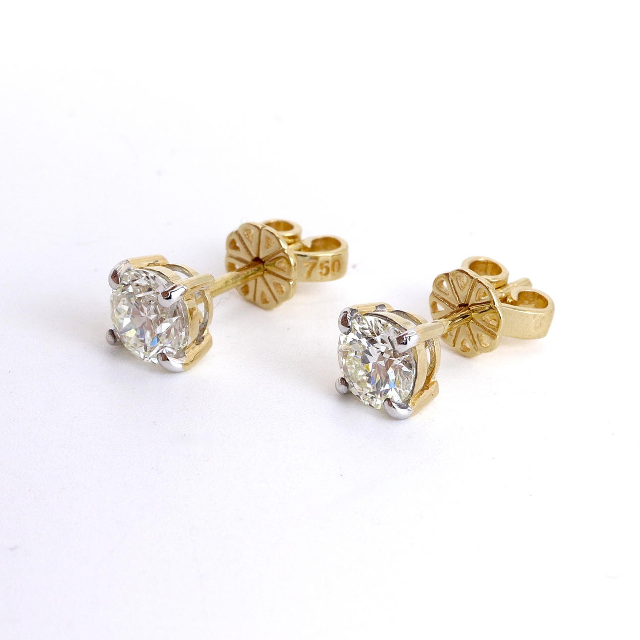 A pair of 18ct yellow gold earrings set with 1.1ct of brilliant cut diamonds.