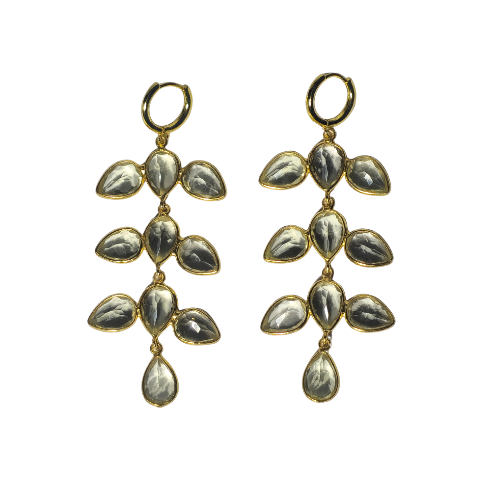 LONG GOLD-PLATED SILVER EARRINGS WITH LEMON QUARTZ.