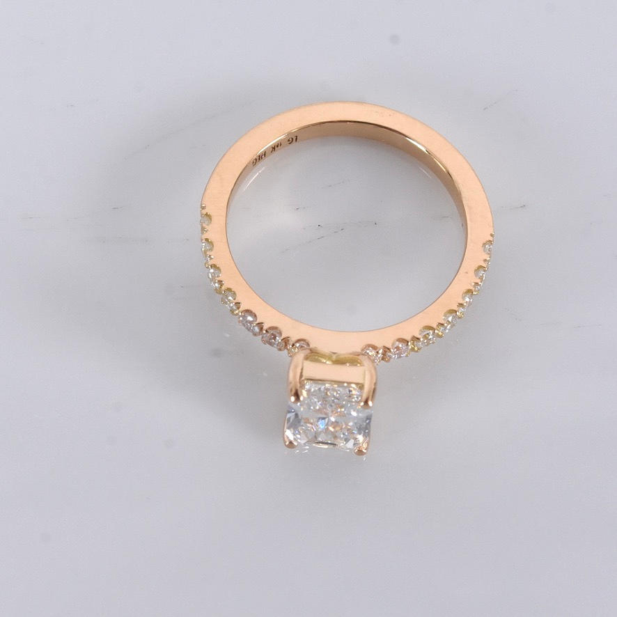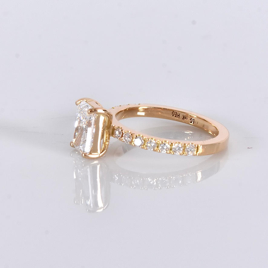Possessed with a larger radiant-cut diamond of 1,52ct, River/VS1 (D/VS1) IGI Cert no. LG712565376 and smaller brilliant-cut side diamonds totalling 0.28ct in matching quality