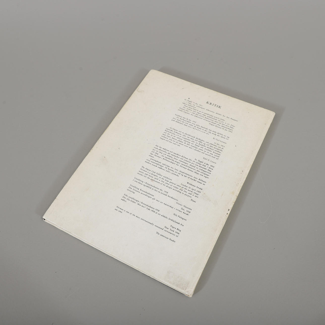 EINAR NERMAN, signed book, “Divor and Divaner”, 1970s.