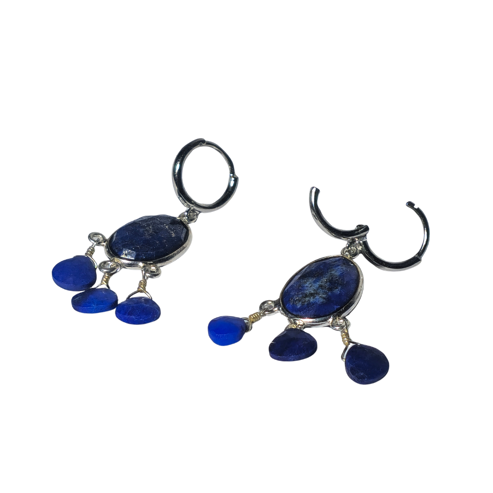 LONG SILVER EARRINGS WITH FACETED LAPIS LAZULI.