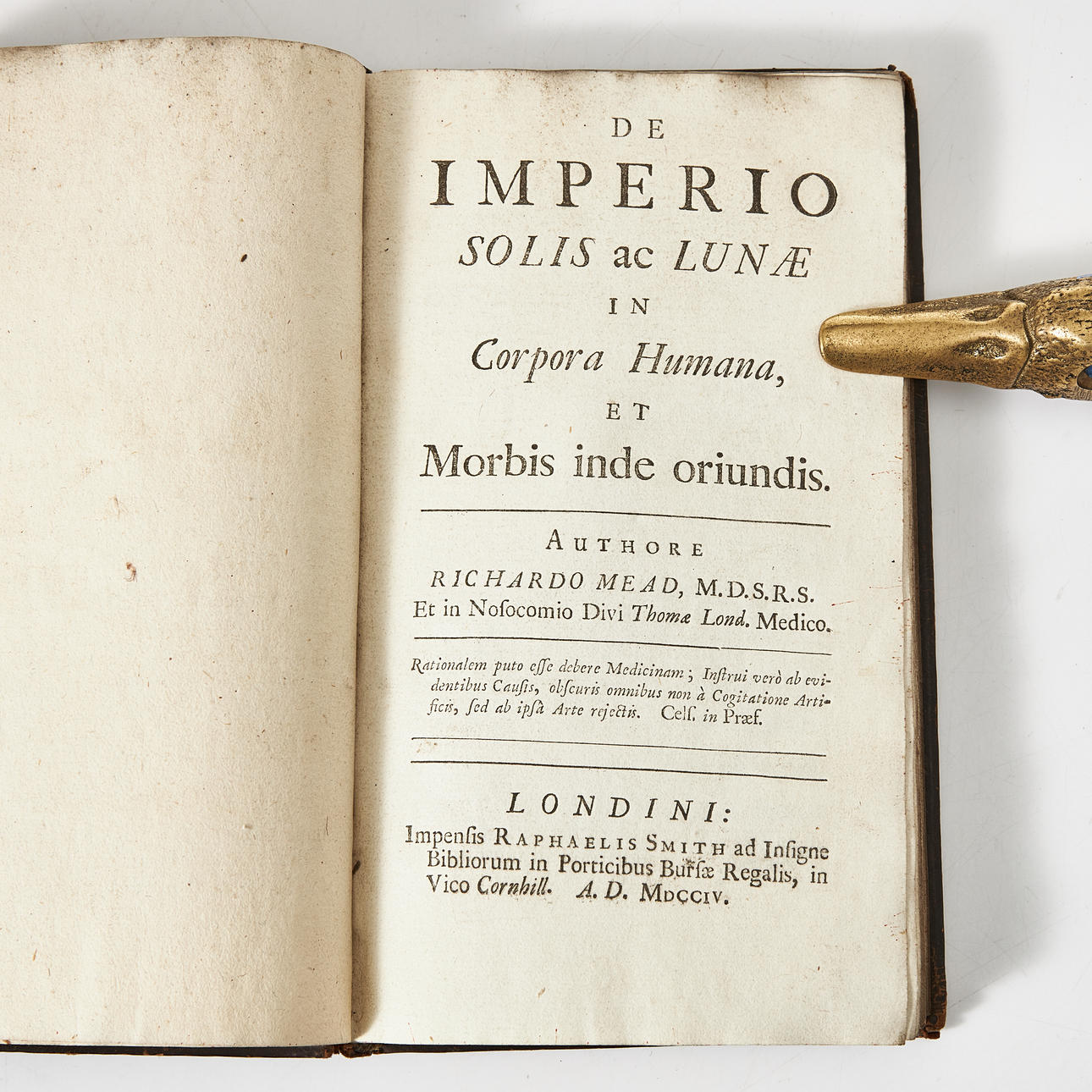 MEAD, RICHARD. De Imperio Solis ac Lunae in Corpore Humana, and Morbis in Oriundis, London, (Smith), 1704.