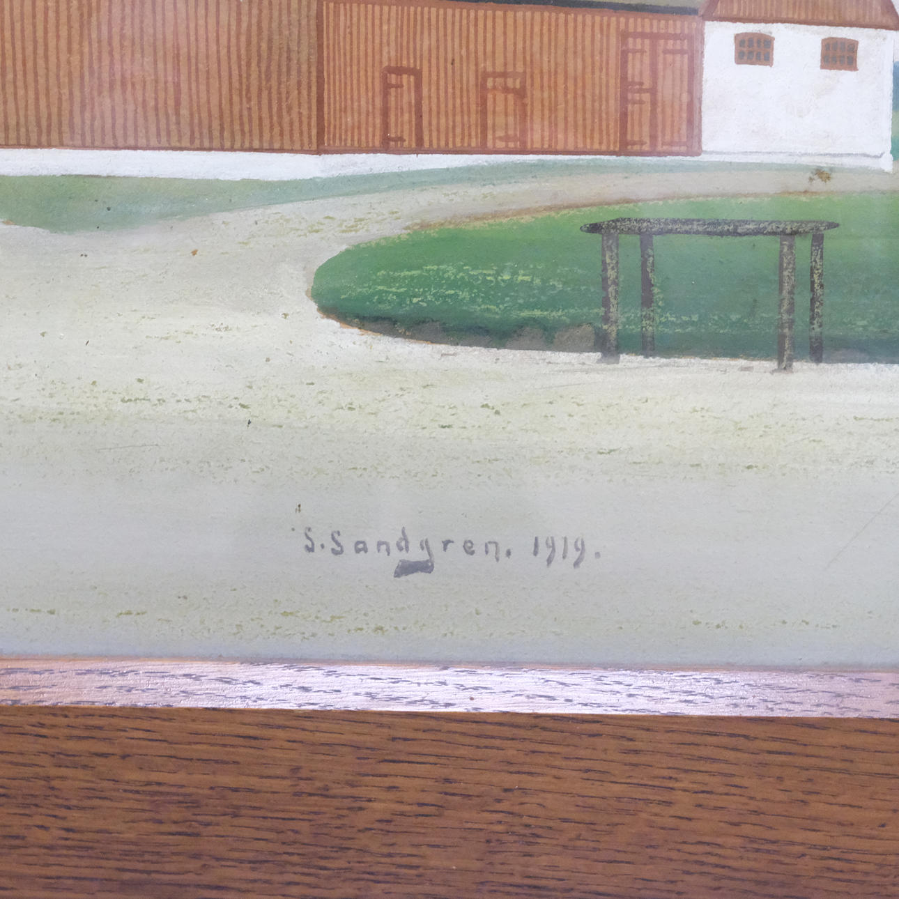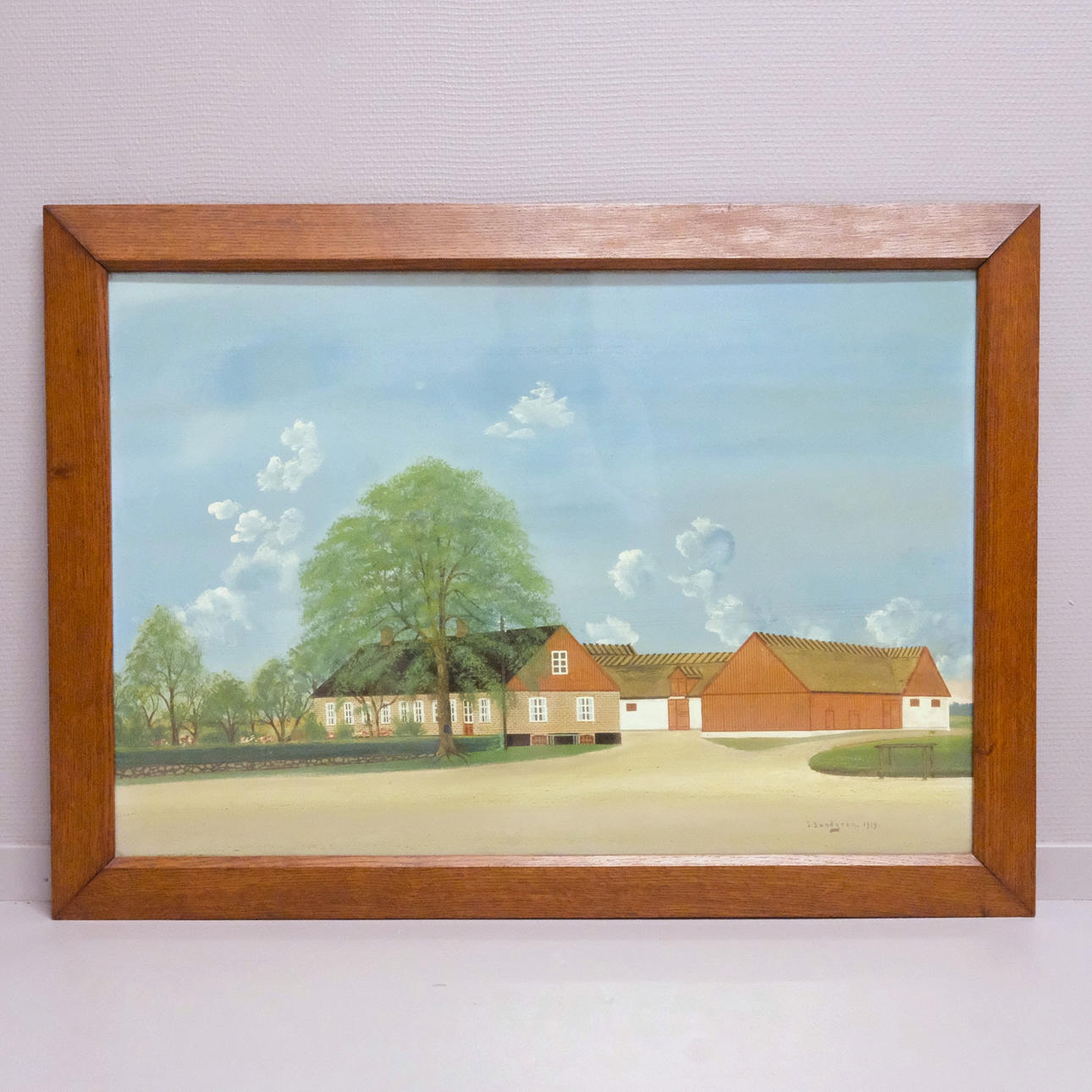 Farm in Göralöv, Skåne, signed and dated 1919, dimensions 81 x 55 cm, frame dimensions 94 x 68 cm.