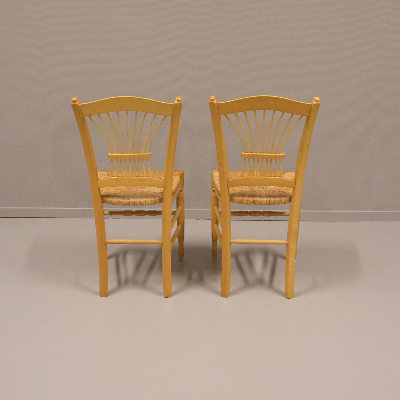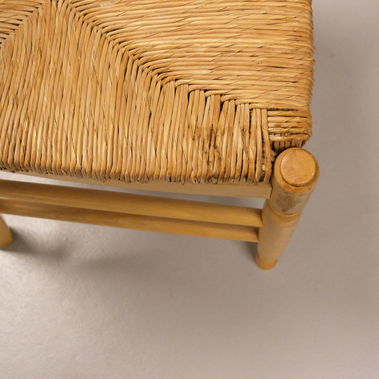 Straw and beech. Label-marked. Height 90cm, seat height 46cm, width 42cm.