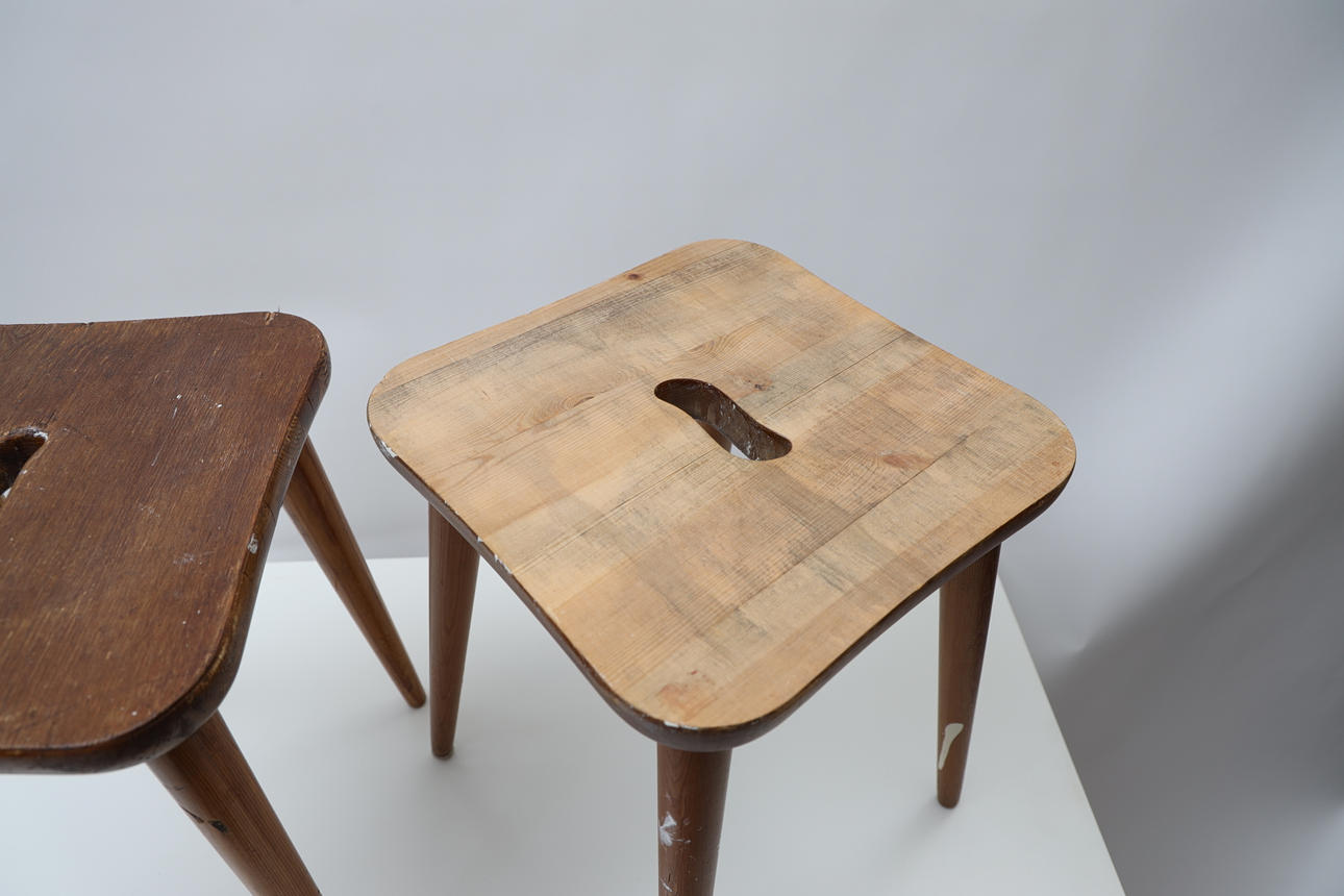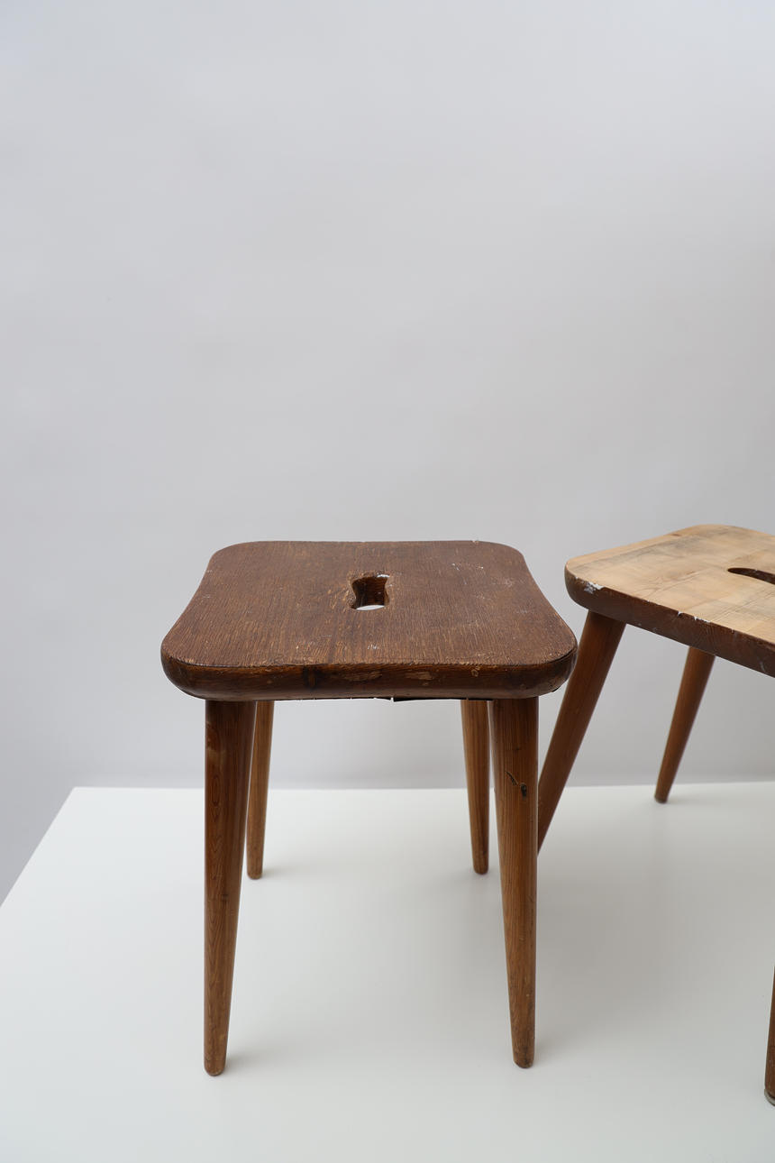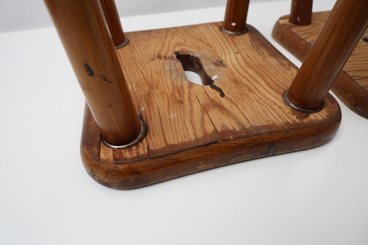 Partially acid-etched pine. Stamped. Height 44cm 33 x 33cm.