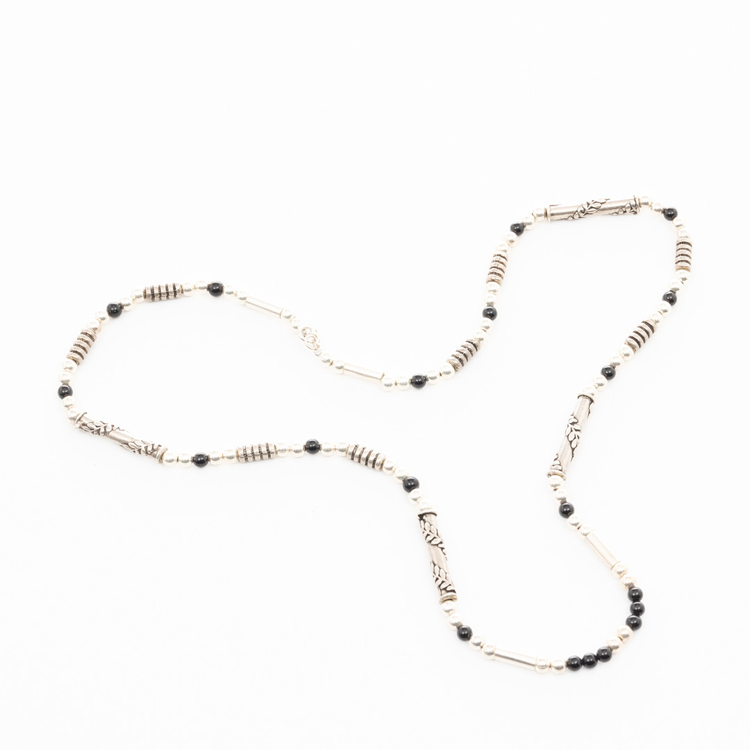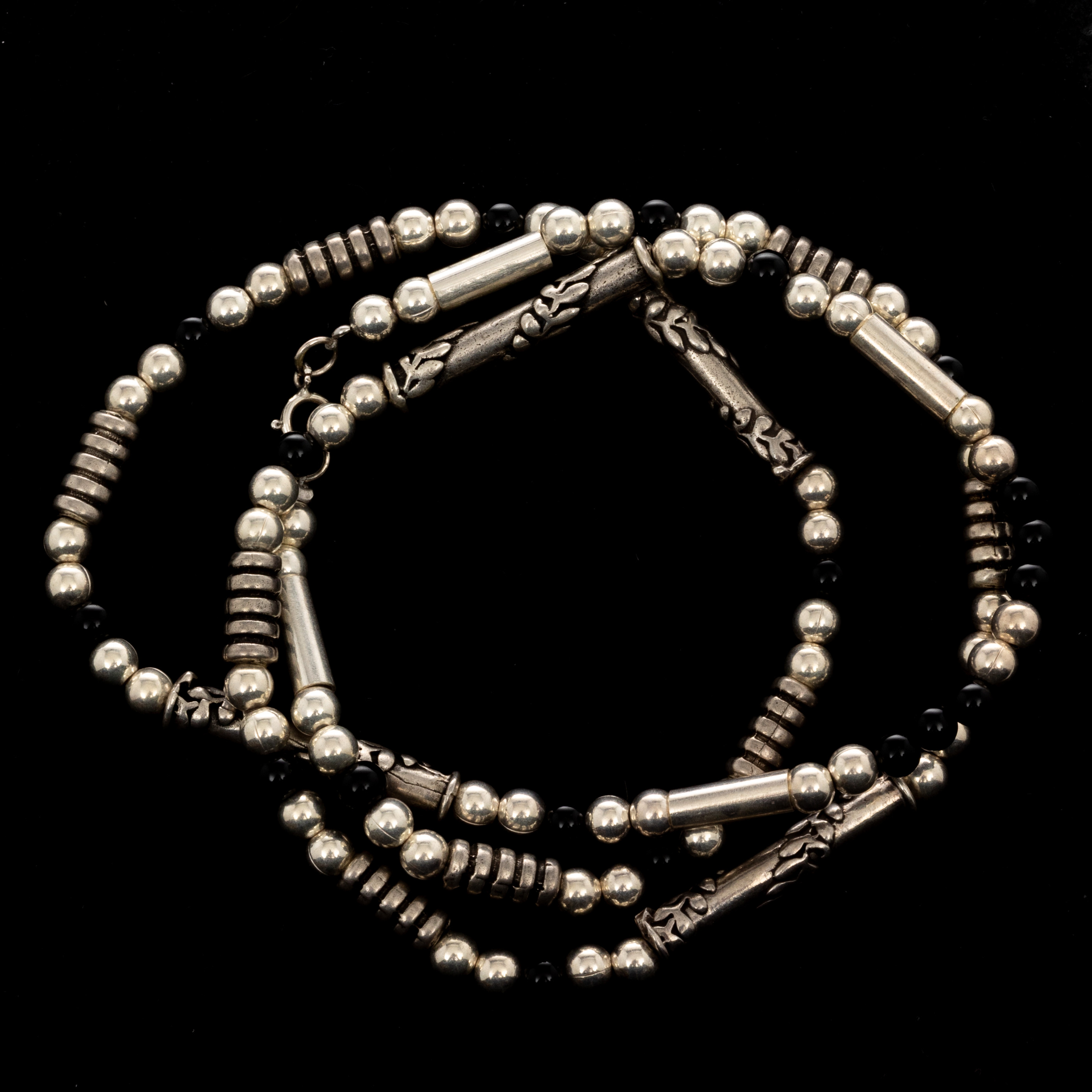 4950042. NECKLACE, Sterling Silver, Onyxes.
