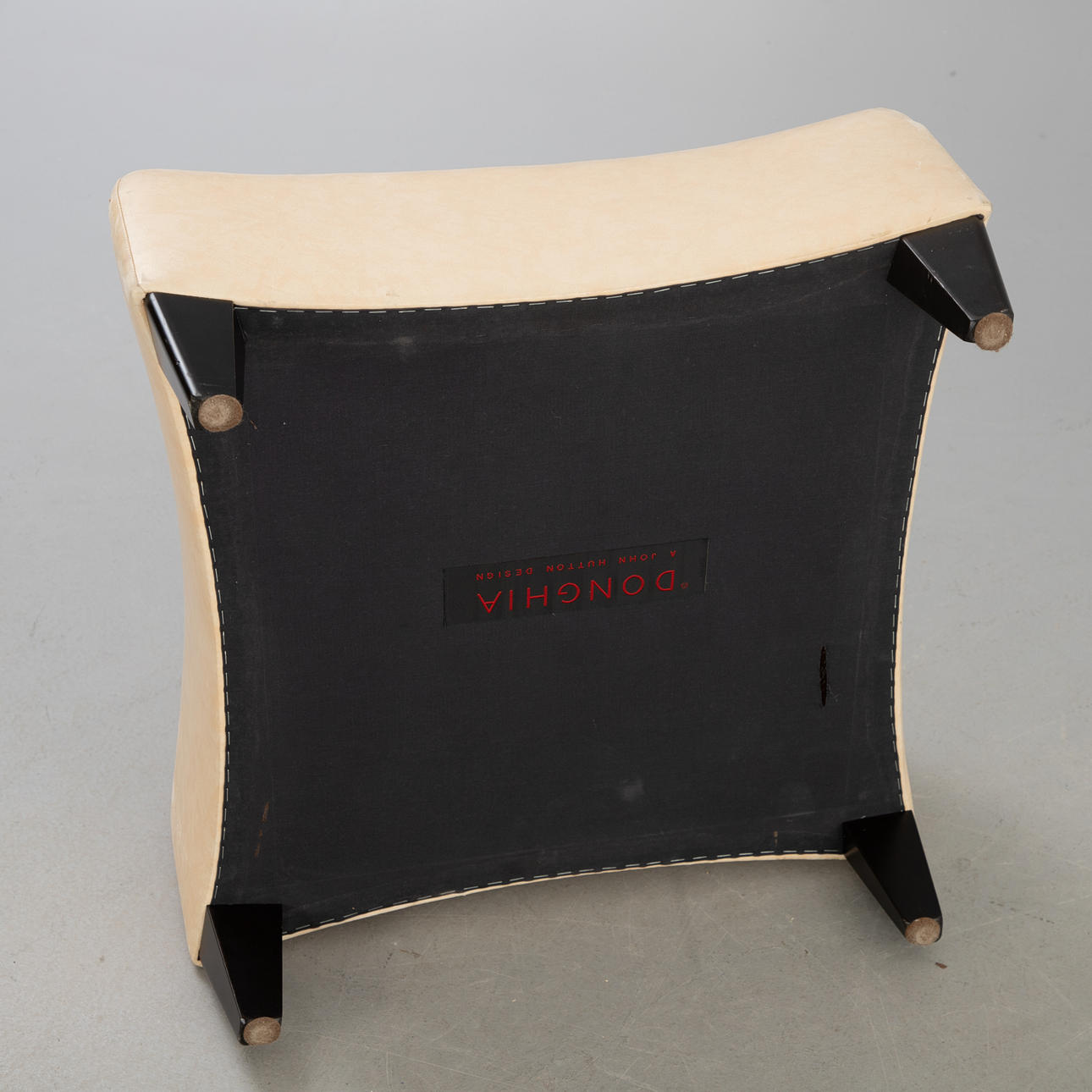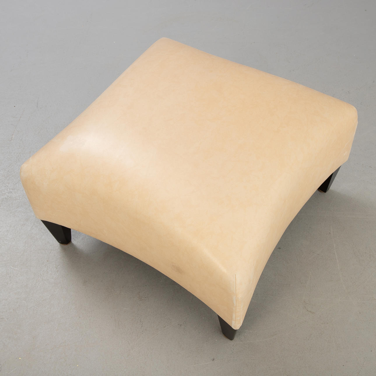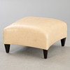 Wooden frame upholstered and covered with bright leather. wooden feet cca H. 36 cm x W 60x60cm.