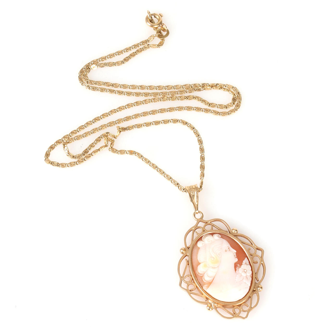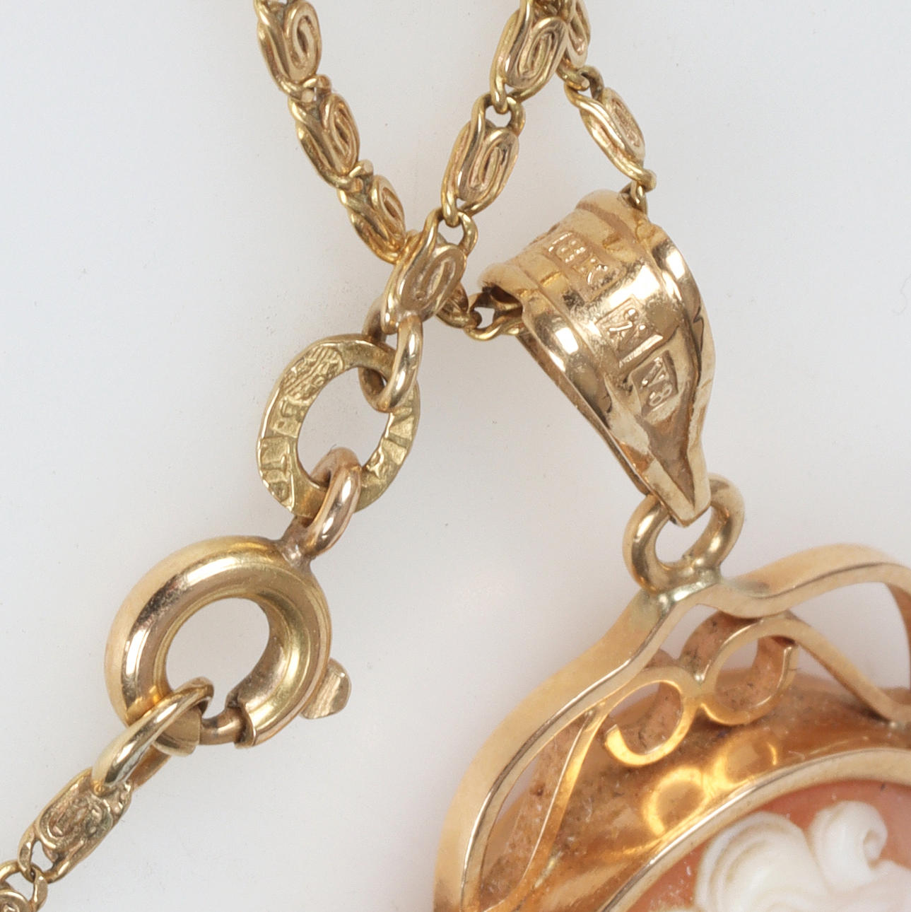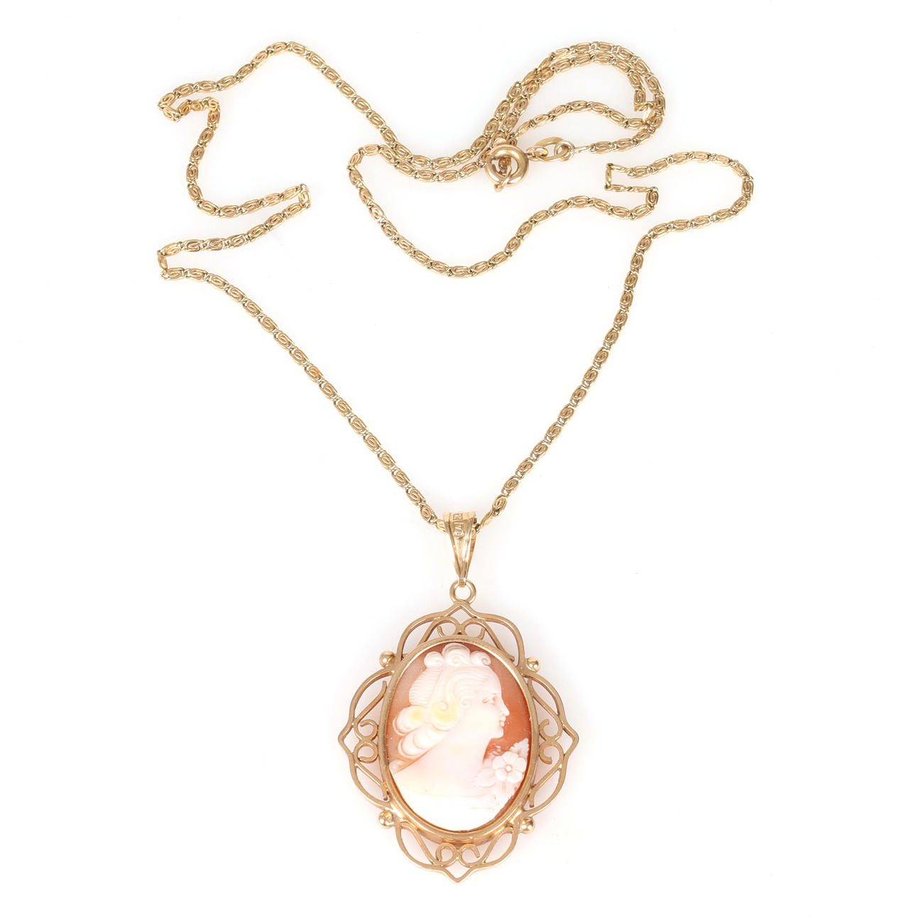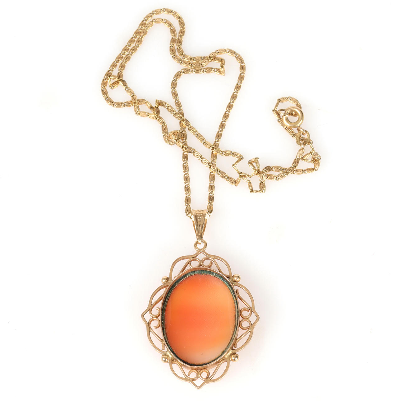 Pendant and chain in 18k gold with camé. Gold pendant, gold chain, necklace, pendant. in 1947.