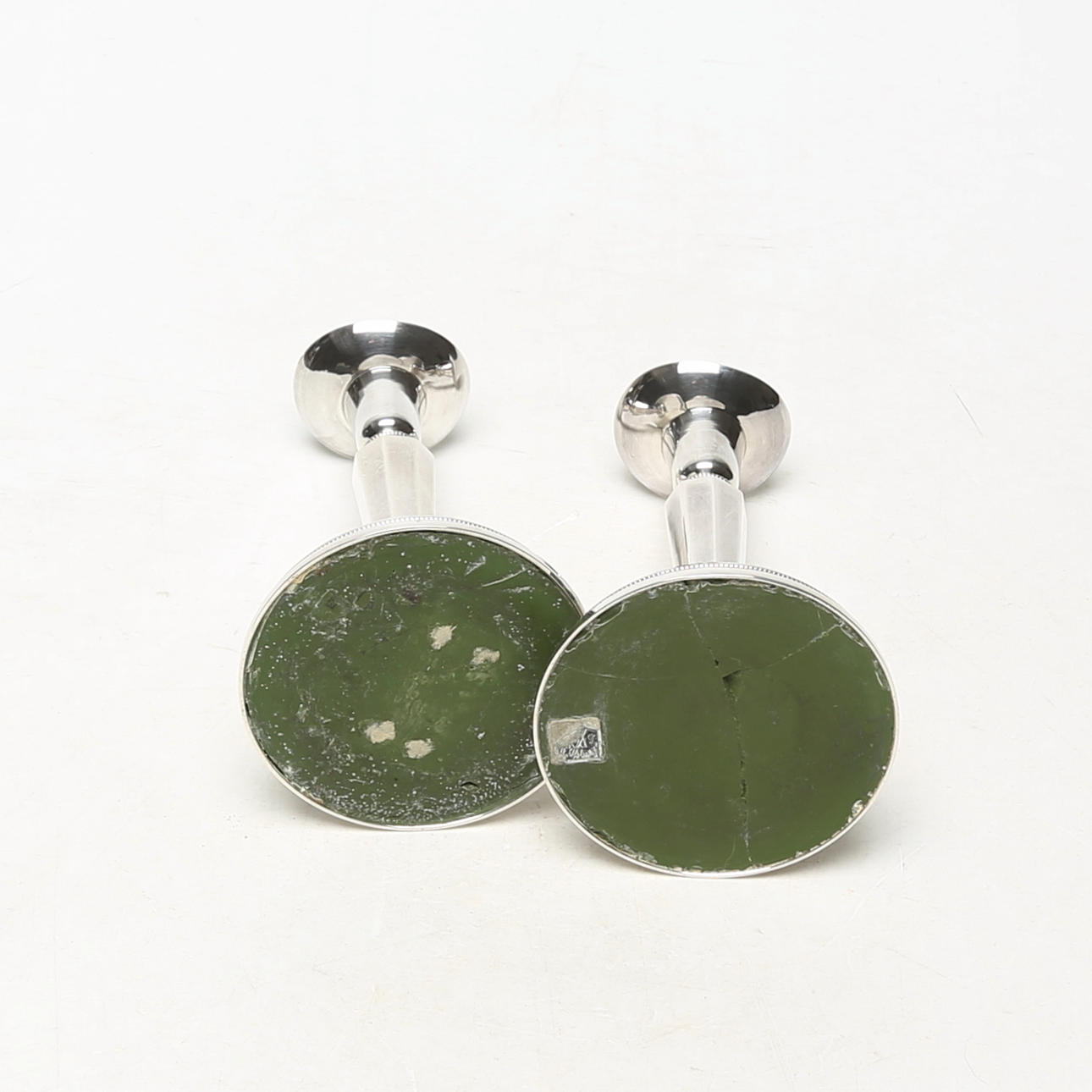 4950254. A pair of silver candlesticks.