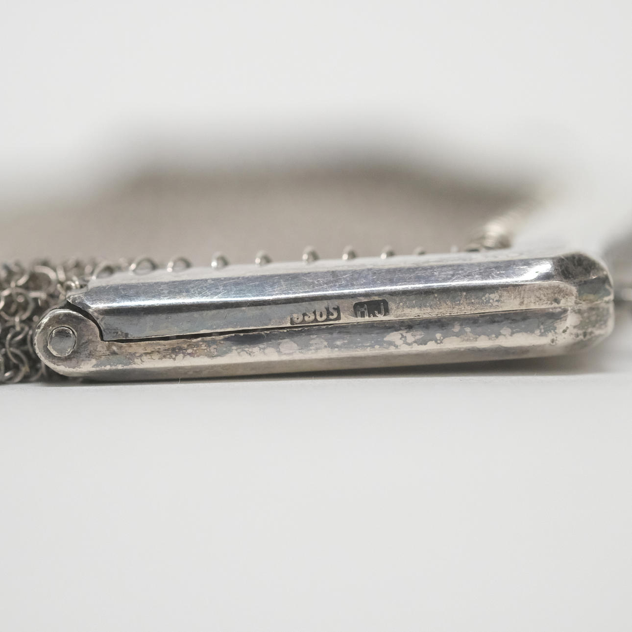 Purses, dimensions 7,5x6,3cm. Evening bag, dimensions 15,5x17cm. Chain, silver, height approx 22cm. Total weight about 201 grams.