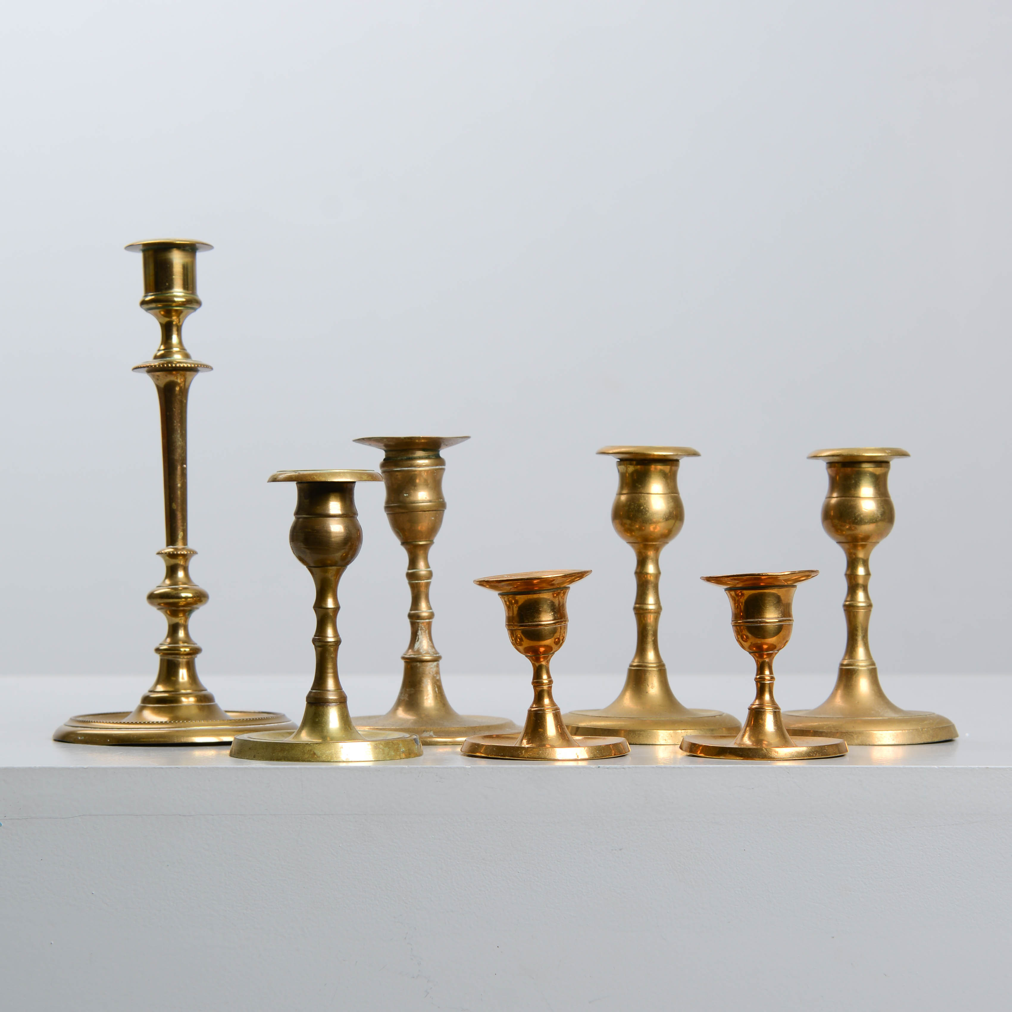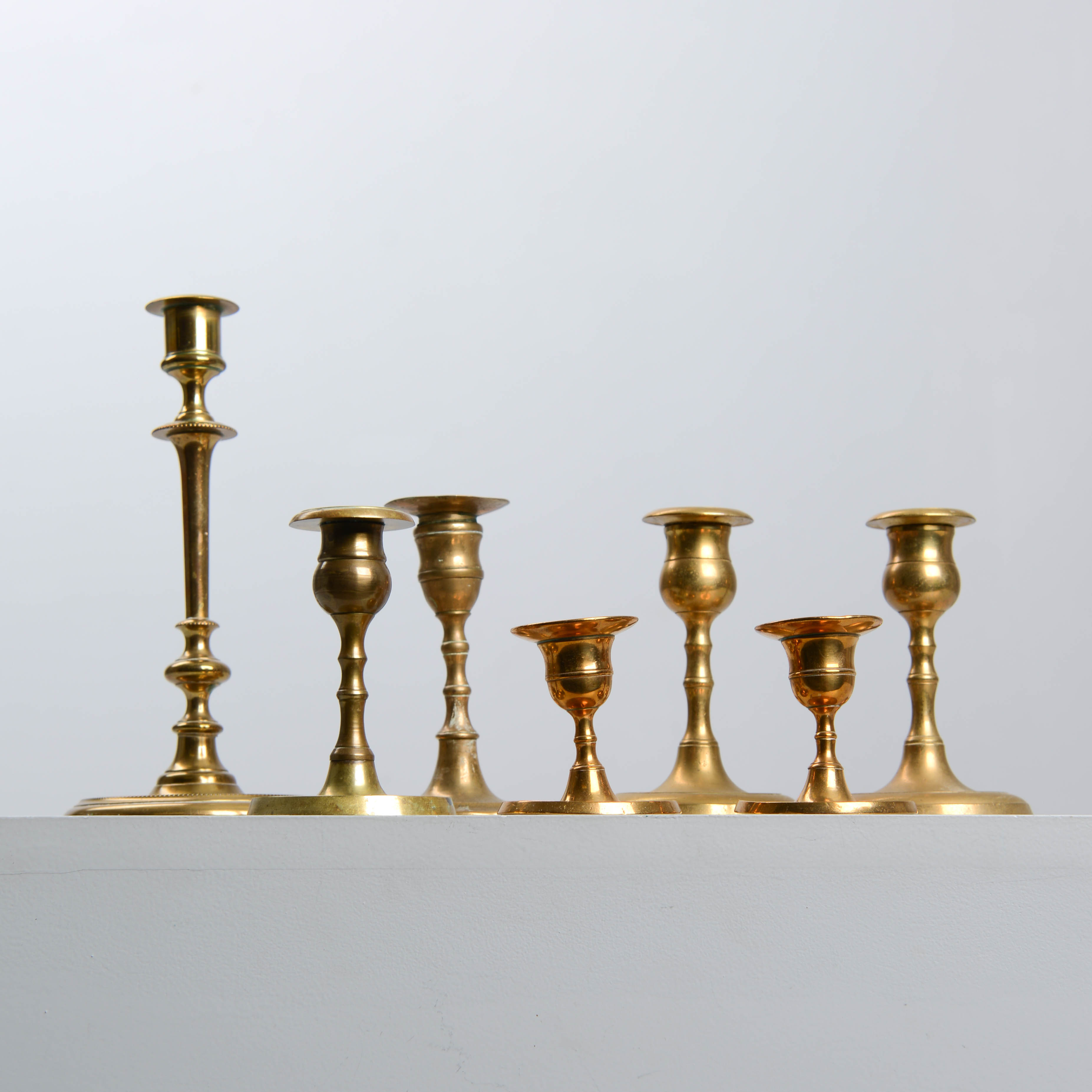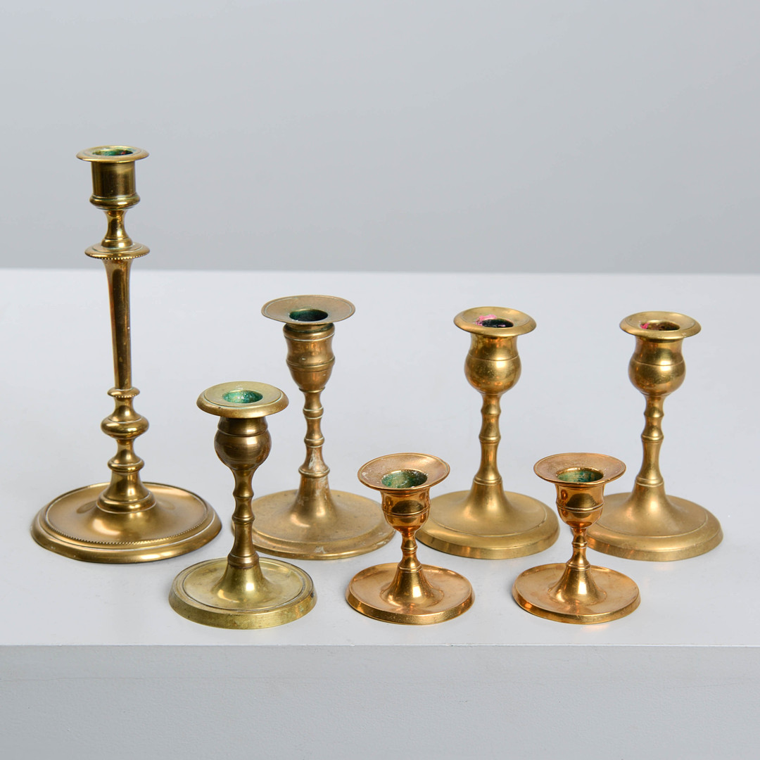 4950458. CANDLESTICKS, 7 pcs, brass.