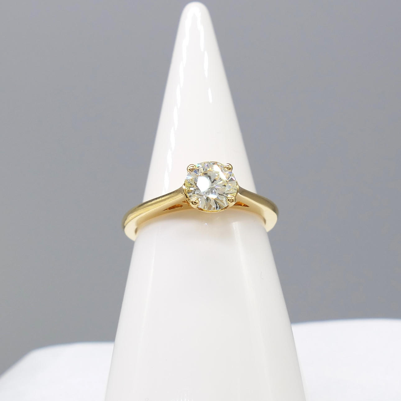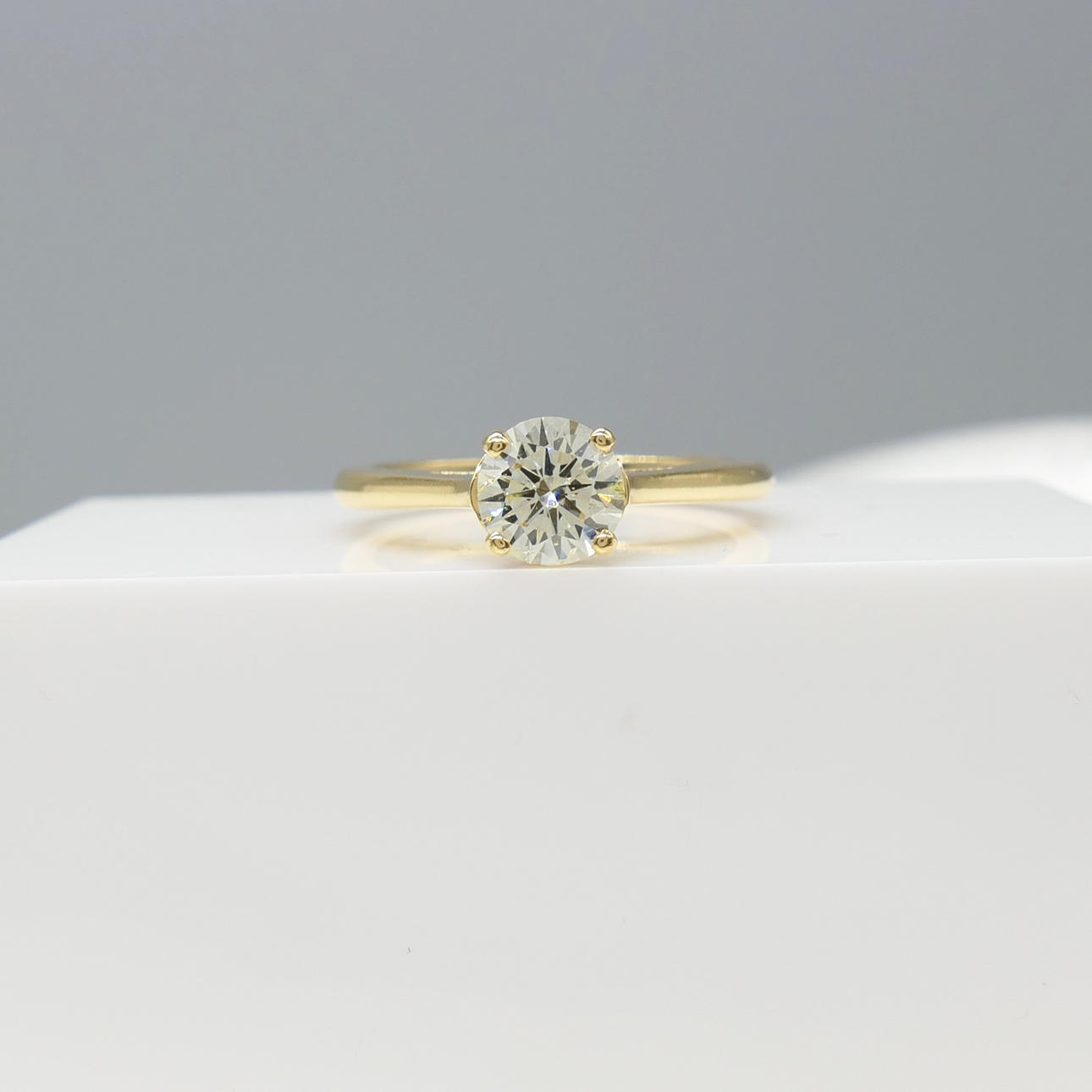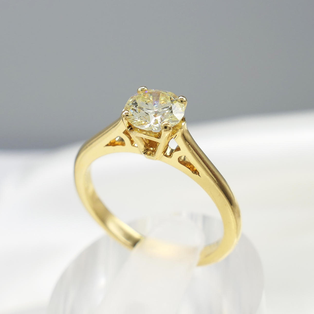 An 18k yellow gold solitaire ring 4-claw set with a 0.67ct round brilliant-cut diamond. Supplied with a World Gemological Institute certificate and gift box.