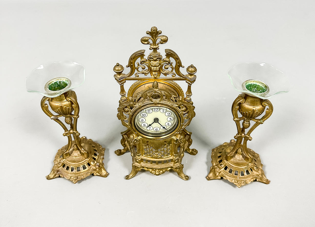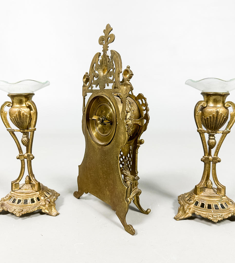 Table clock height 21,5 cm Candlesticks height approx. 15 cm.