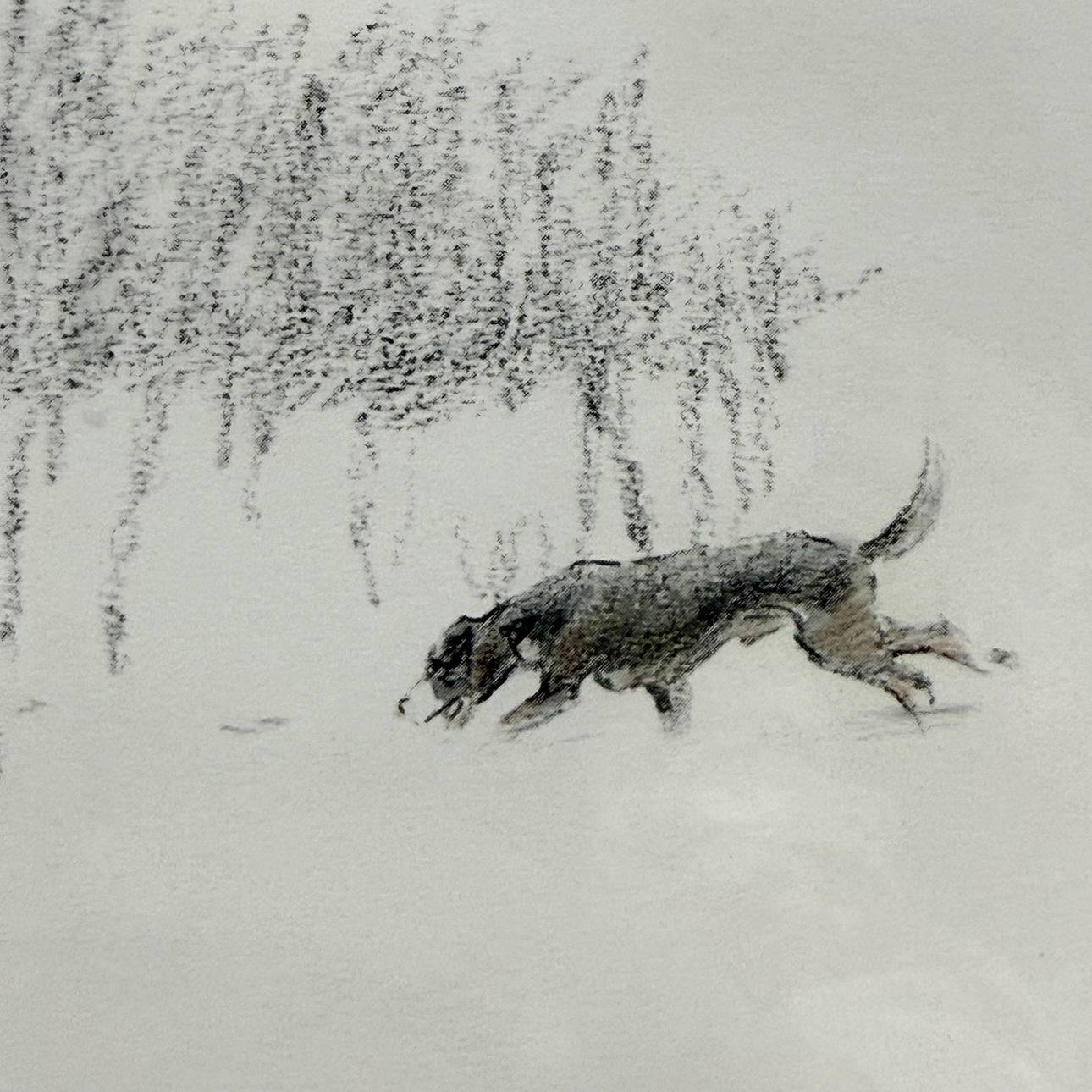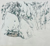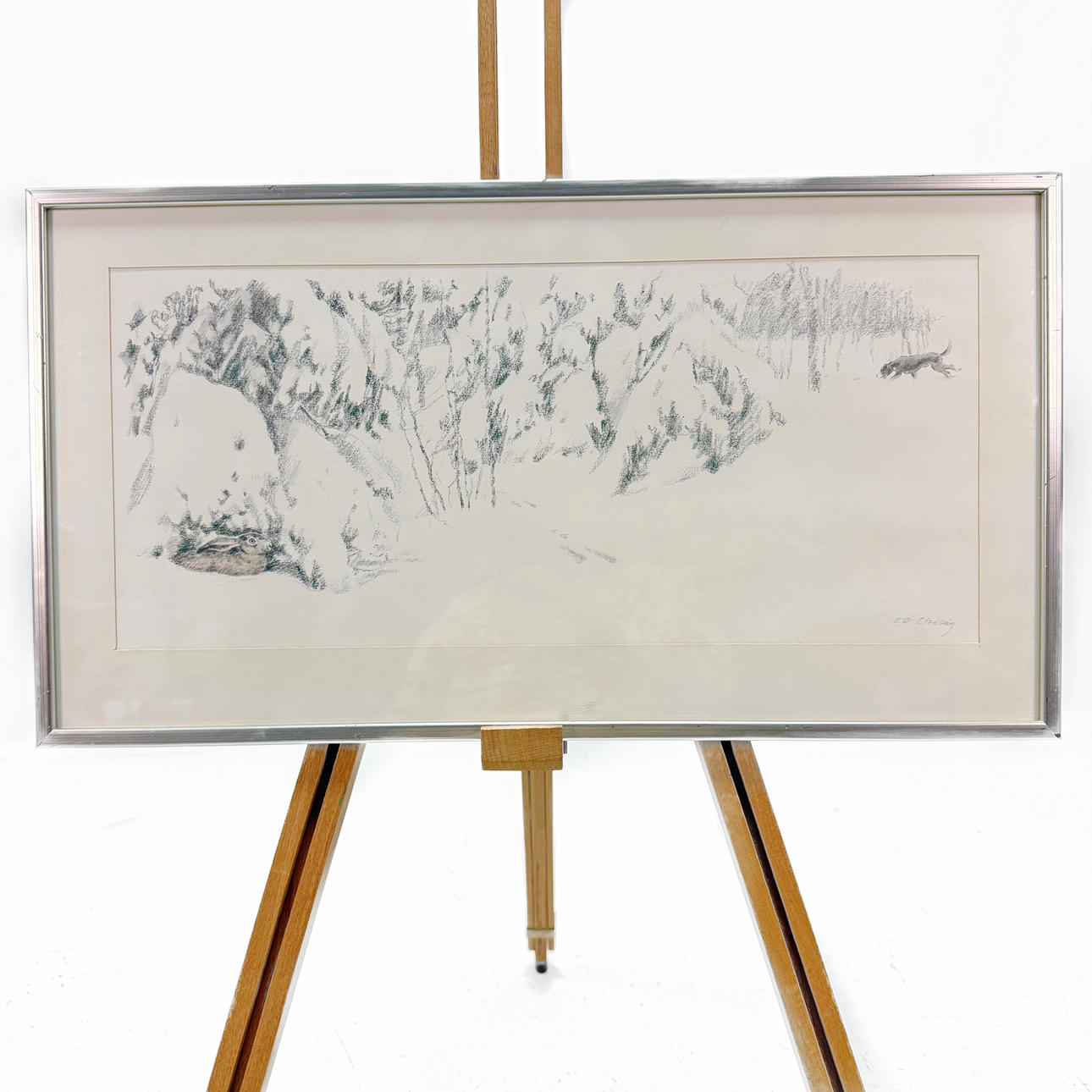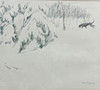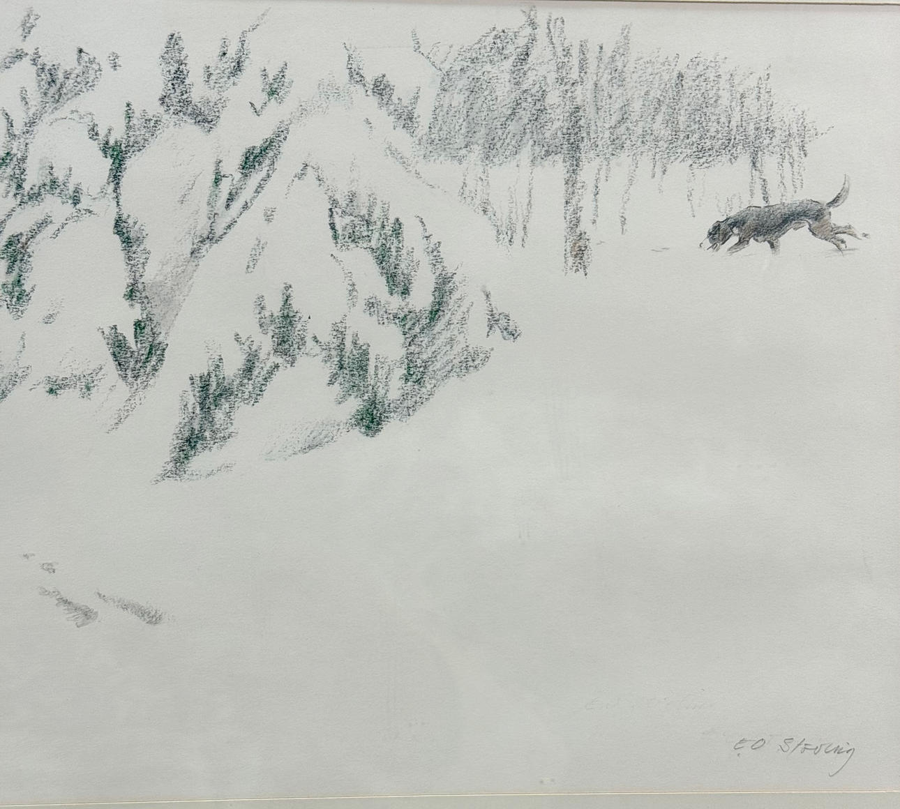 ERIK OSKAR STÖVLING. Drawing, winter hare hunt, signed.