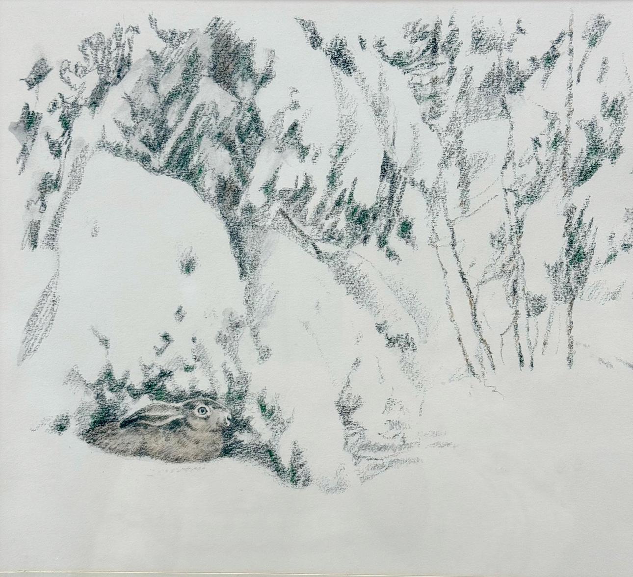 4951041. ERIK OSKAR STÖVLING. Drawing, winter hare hunt, signed.