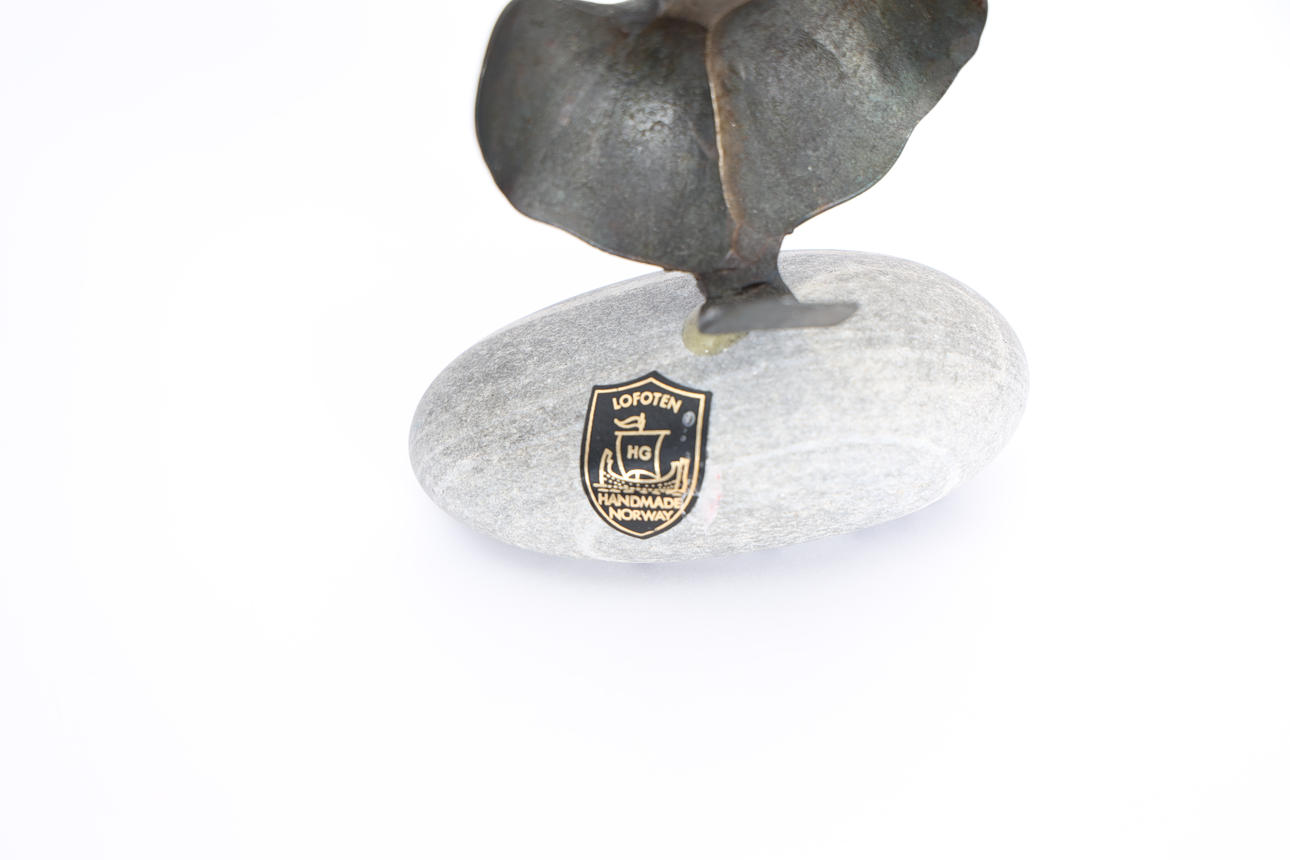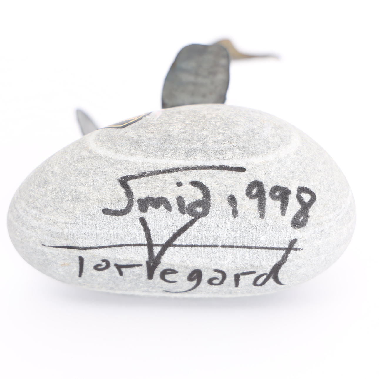 in the form of a bird. Mounted on stone. Signed and dated 1998. Height 17cm.