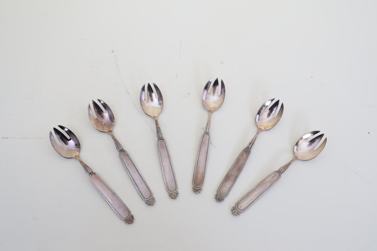 4951078. OYSTER FORKS, 6pcs, nickel silver, Mema.