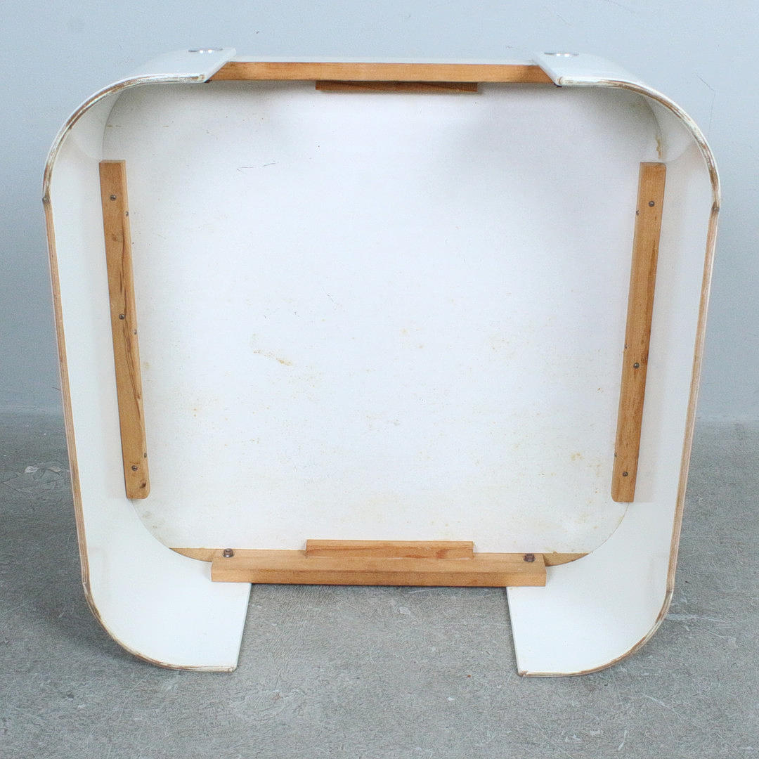 Peter Maly curved laminate and chrome coffee table from COR, 1970. From the Trinum series. Elegant laminate table with curved bentwood legs and chrome knob details. The well-executed minimalistic design complements the all-white appearance and ensures a seamless combination of functionality and style.