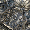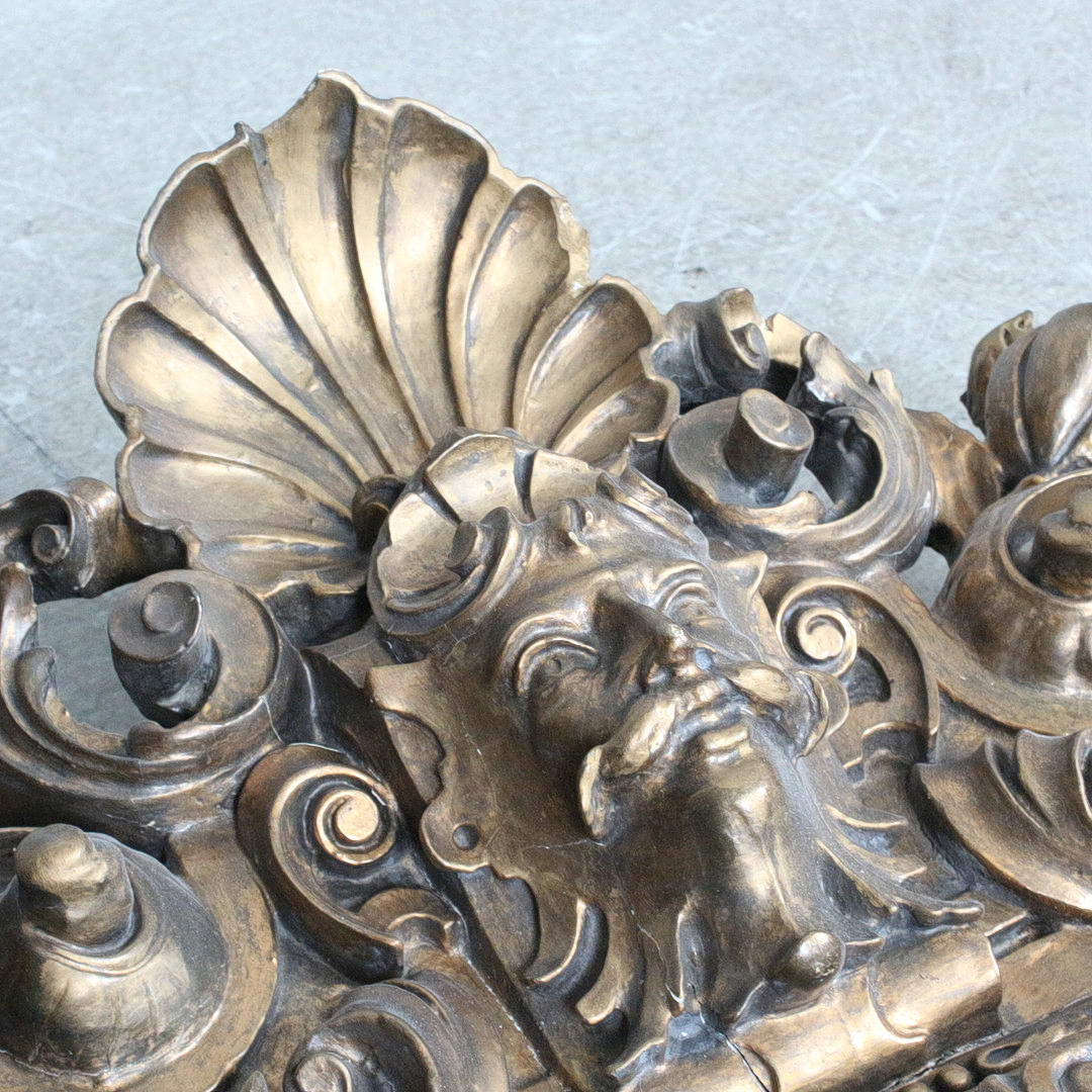 Large rococo style wall mirror made of wood and stucco. Painted in gold.