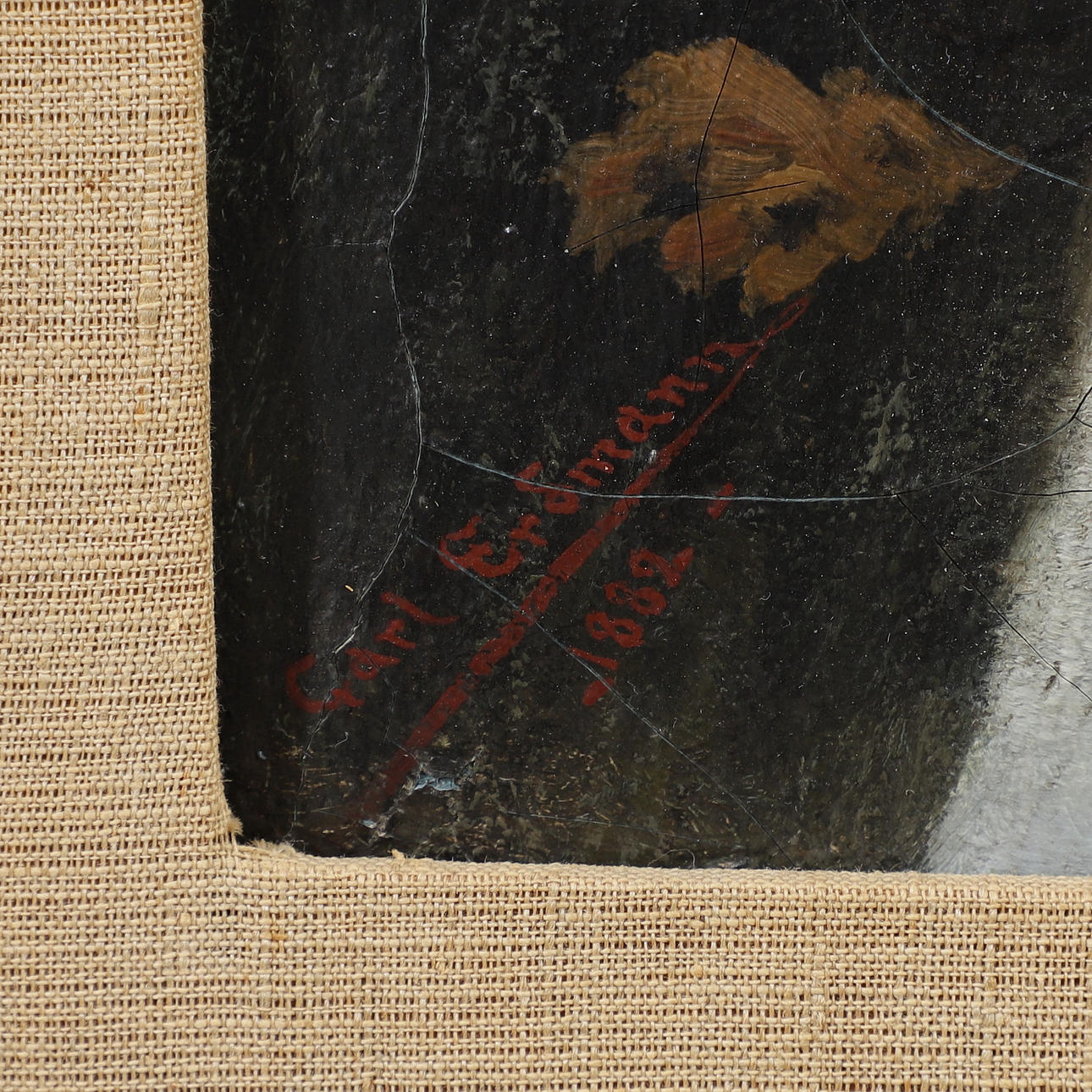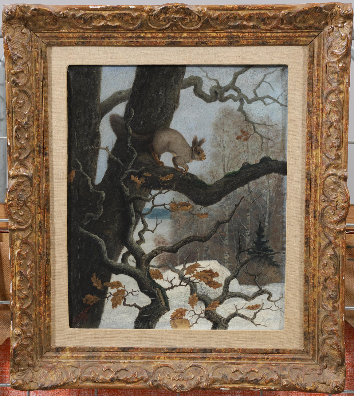 CARL ERDMANN. Squirrel in tree, oil on canvas, signed and dated 1882.