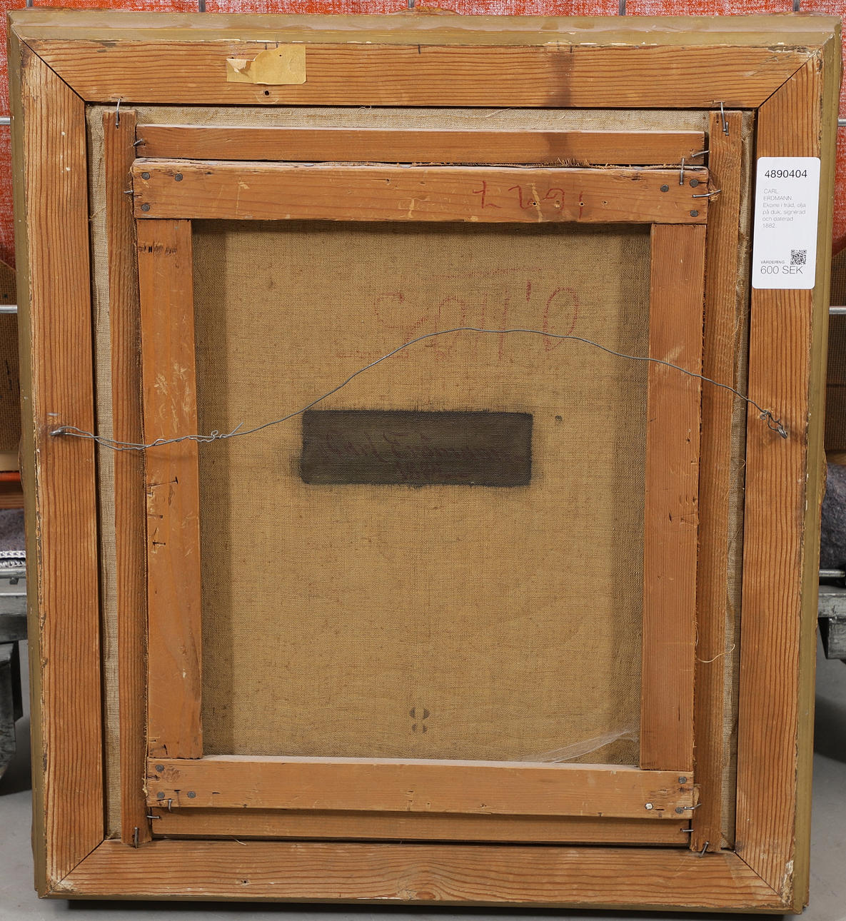 Dimensions canvas 46x37,5 cm, dimensions with frame 64x56 cm.