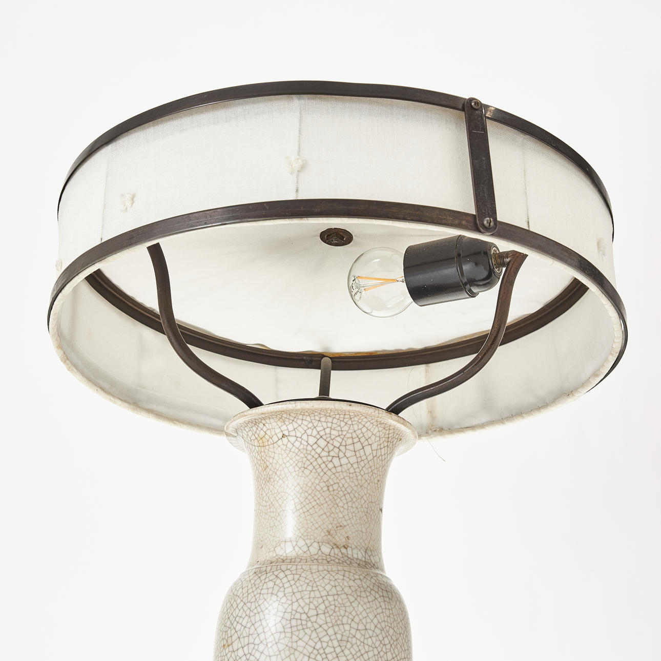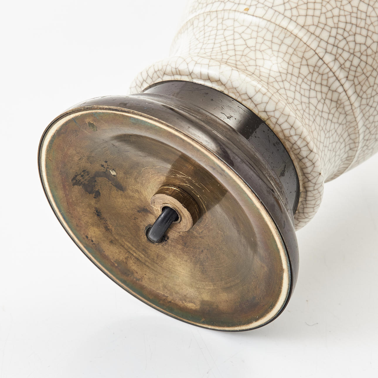 4951612. TABLE LAMP, ceramic with metal base, cracked glaze.